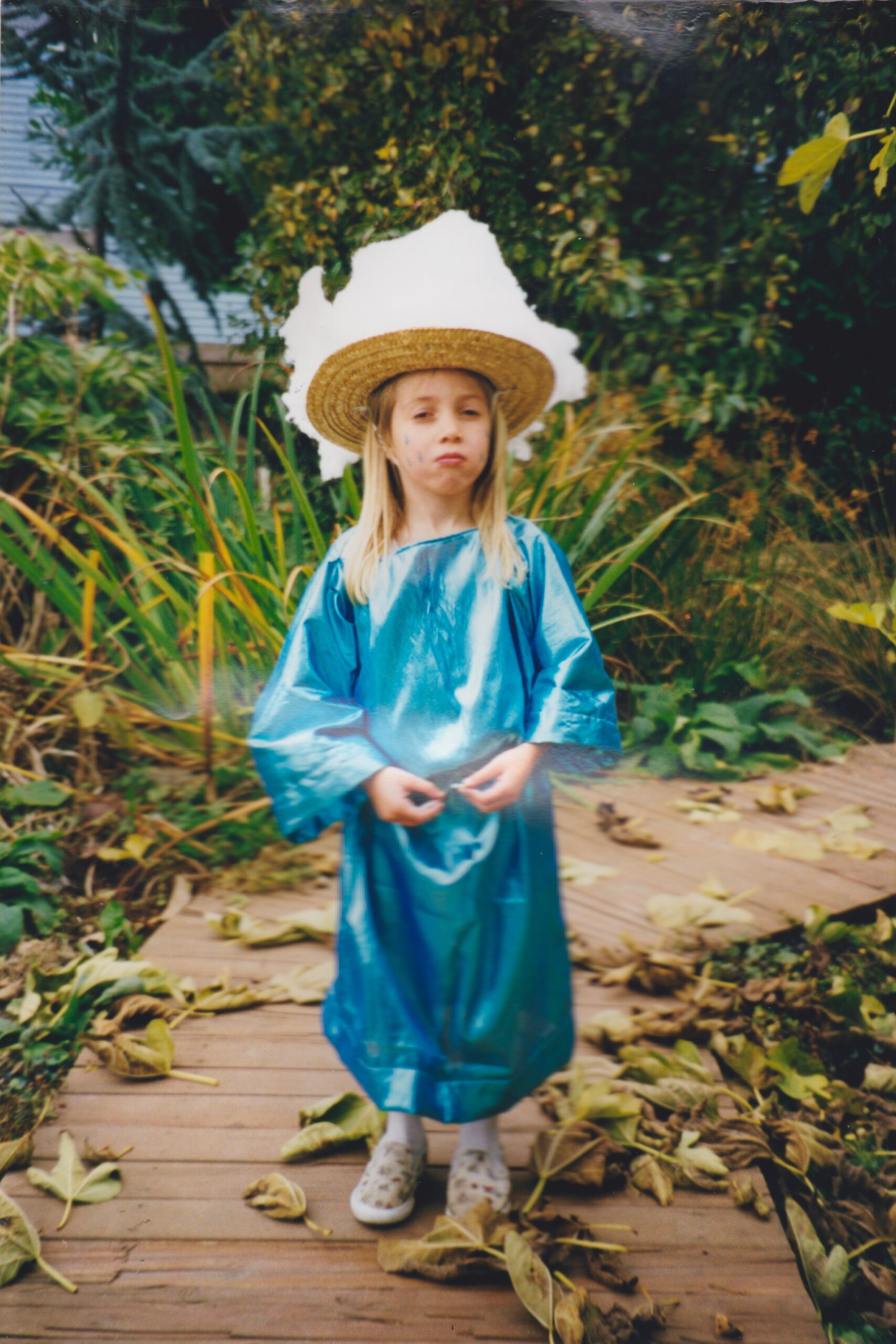 Trotting up the path raining as she goes. Gwen put a lot of work into designing the costume. Once the materials were gathered, the rest came fairly quickly, and a legend was born.