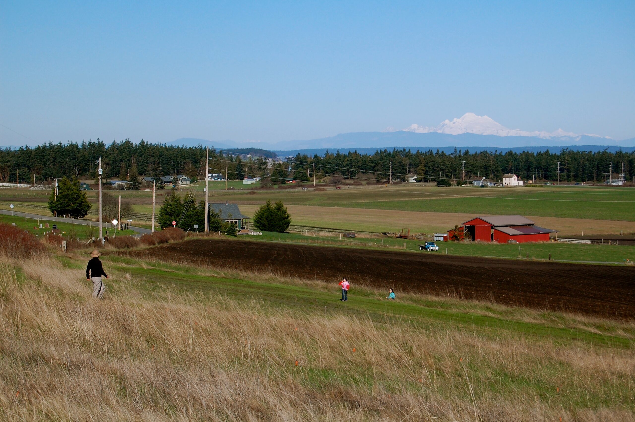 DSC_0672 Published 1 May-07:00bThu, 01 May 2025 23:17:42 -0700000000pmThu, 01 May 2025 23:17:42 -070025 2016 at 2560 × 1702 in Along the Edge of the World: Ebey’s Landing, February 2010 Kristina follows downhill as Talia & her buddy race ahead towards the sea as Mt. Baker/Kulshan looms in the distance.