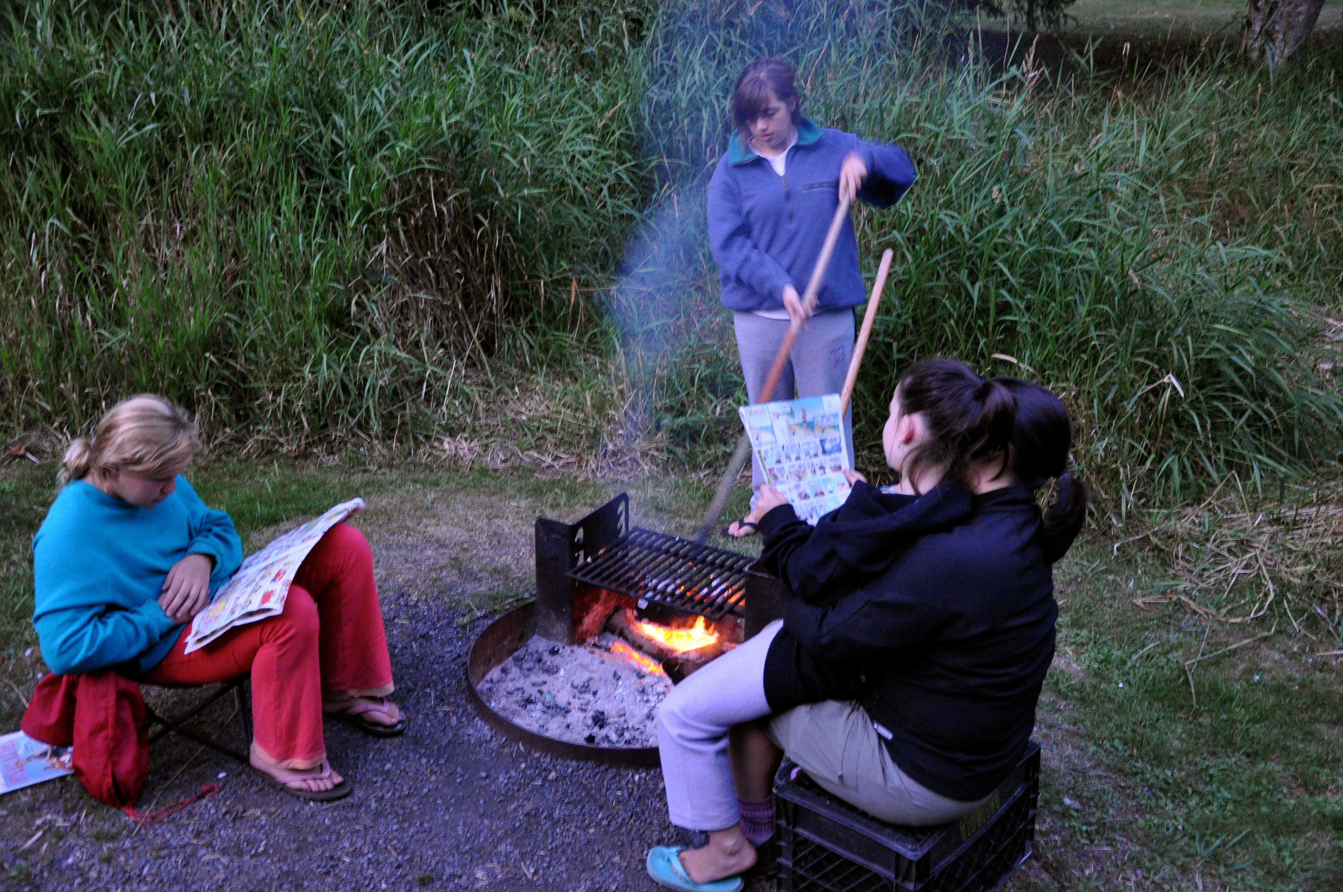 L2R: Kate, Morgan, Talia, Kristina. Together enjoying a campfire at Lake Ozette on our last night camping in Olympic National Park, Monday 23 August 2010.