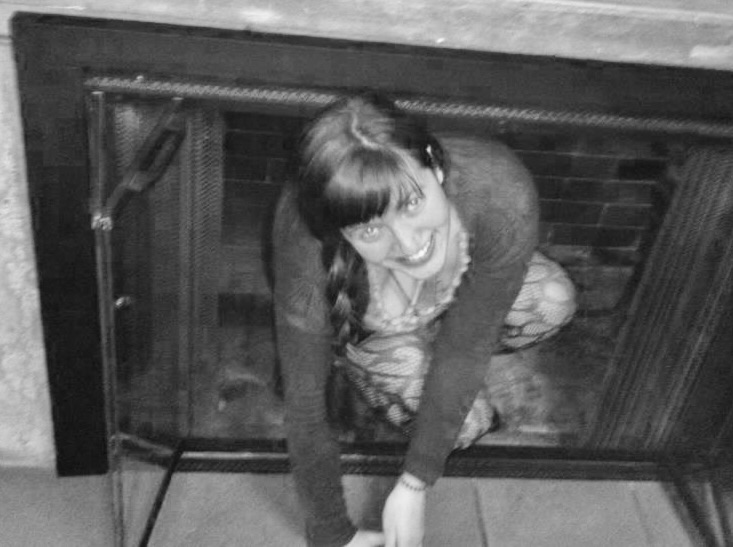 My oldest dresses up and gets inside the fireplace of a chimney someplace