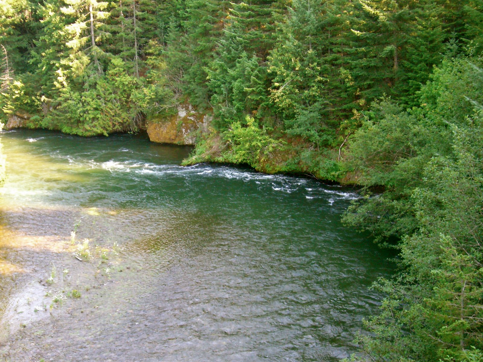 Yakima River flowing south and east, eventually across the Desert and into the Columbia River, 19 August 2006. Foto by William Bass.