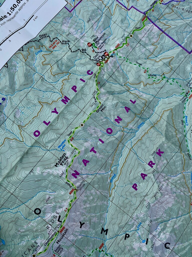This is the trail we’re looking for. We need to drive off to a different trail head, passing two women who were former thruhikers of multiple long trails and were out for an extended backpacking trip thru the Olympics. Why didn’t I ask them if I could take their picture? Was too engrossed by their stories of far flung travels and cool adventurers, that’s why.