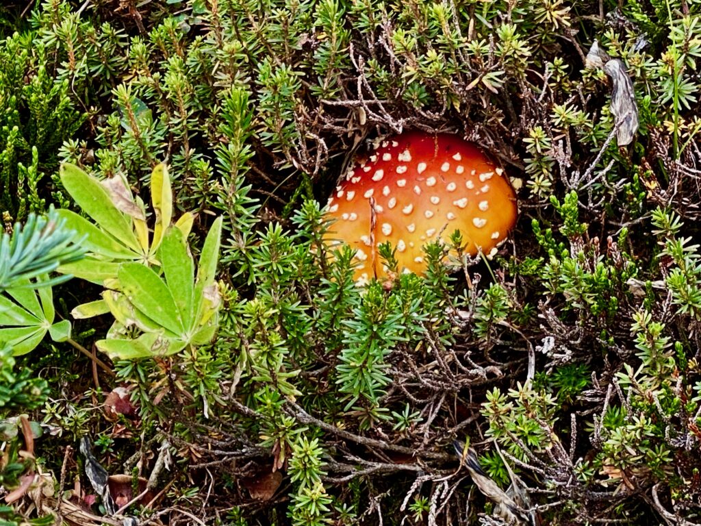 An unidentified mushroom sprouts along the trail. There were many of them about. Up here the weather already felt more like Autumn than Summer.