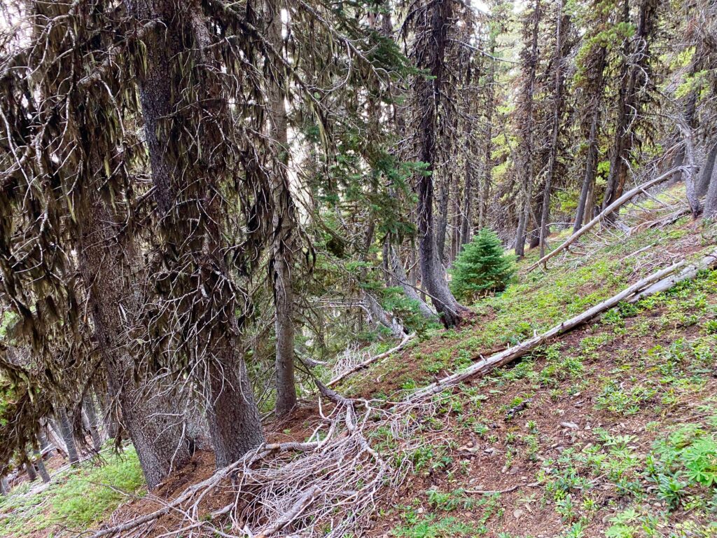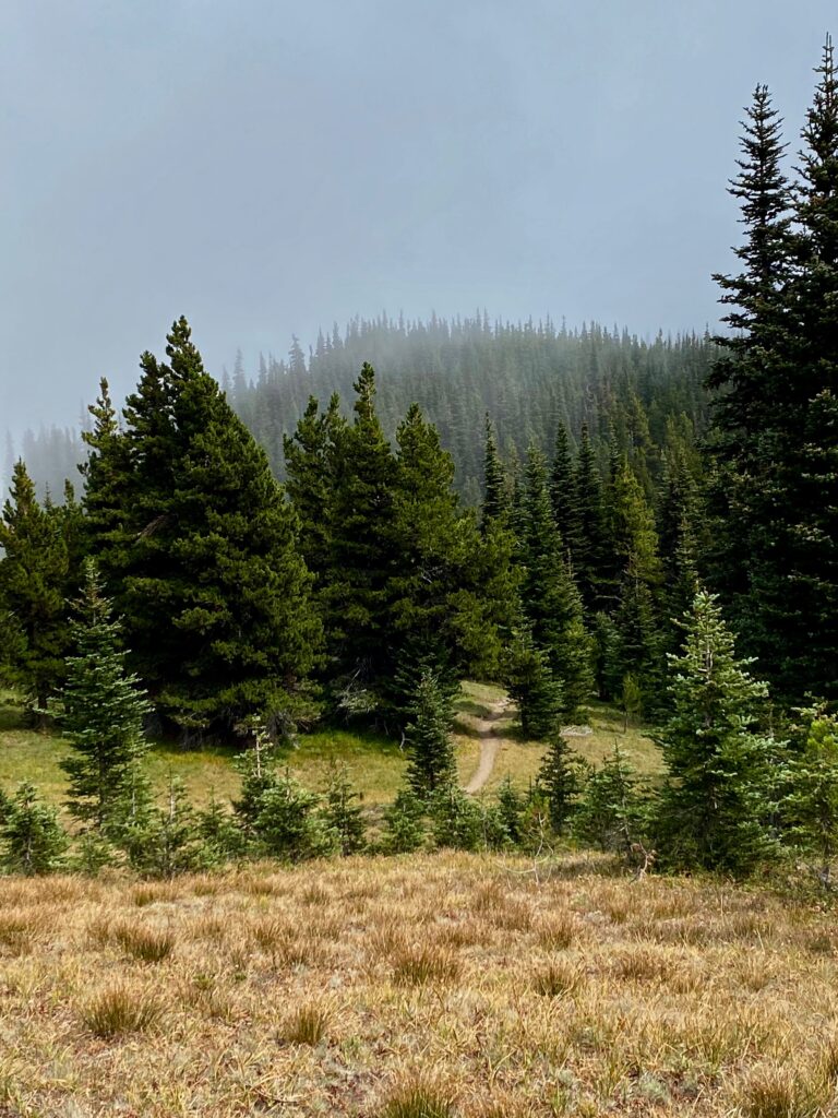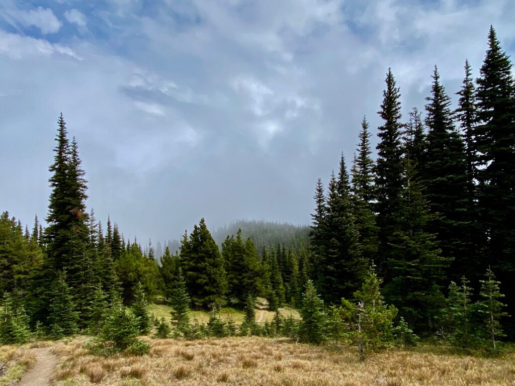 We cruise back down Maiden Peak (well, I’m limping, LOL) into the gap between it and Green Mountain on our way back to the car.