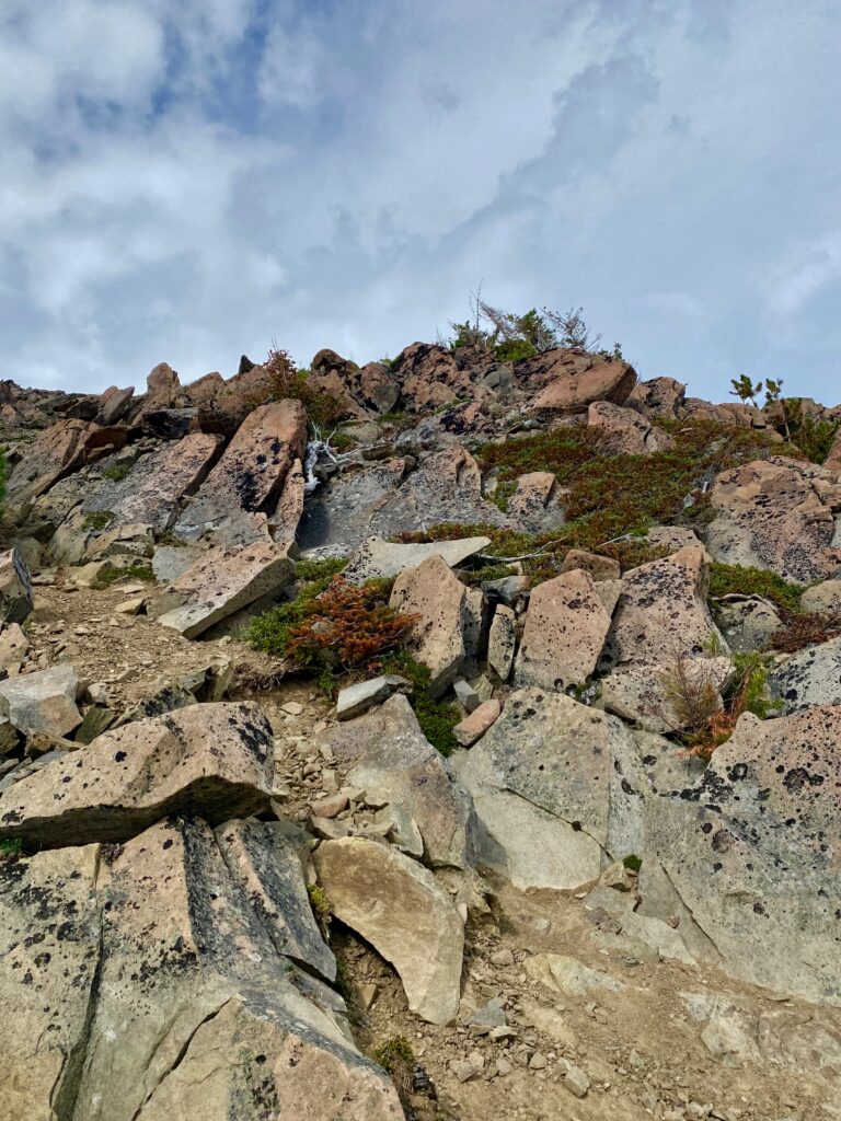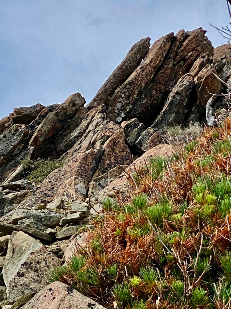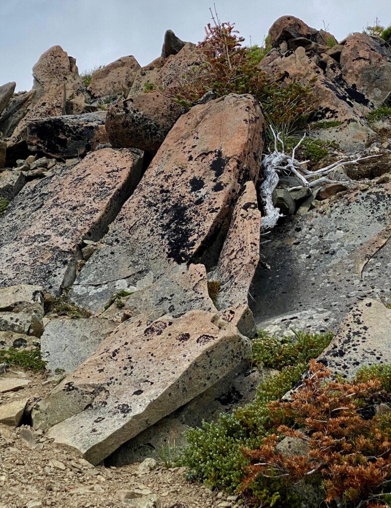 Intrigued by storm blasted rocky outcrops on Maiden Peak. Well, the large, long boulder foto left of center reminds me of an ancient sarcophagus dug up from some ruined city and abandoned upon the edge of forever.