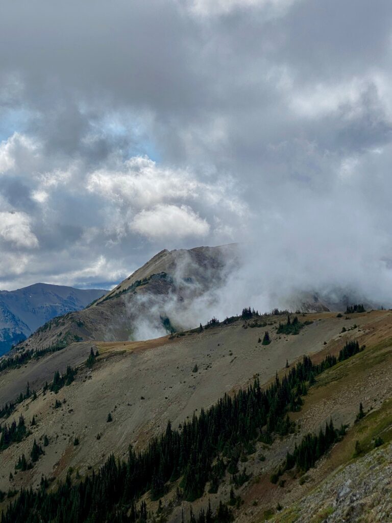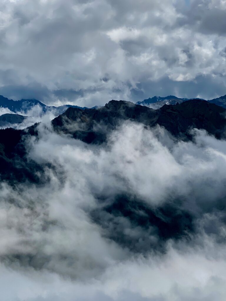 What’s weird were these acoustical eddies of sorts. Step into a curve of the mountain as the trail winds across steep hillsides and ravines, all would feel silent. No sound. Until one steps around the corner and the wind roars and howls as clouds condense and rush over as if alive.
