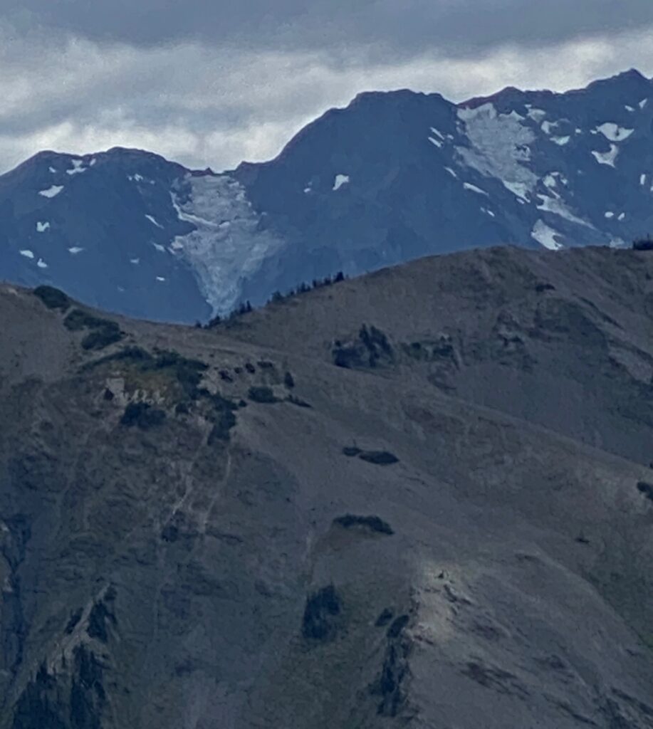 Remnant glaciers hang amid scattered snowfields from the slopes of … Mt. Deception? Regardless, there was far more snow across the Olympic and Cascade Mountain ranges when I first visited Washington and the Pacific Northwest in 1986 & 1987 before moving out here in 1992. Global Climate Disruption changes everything.