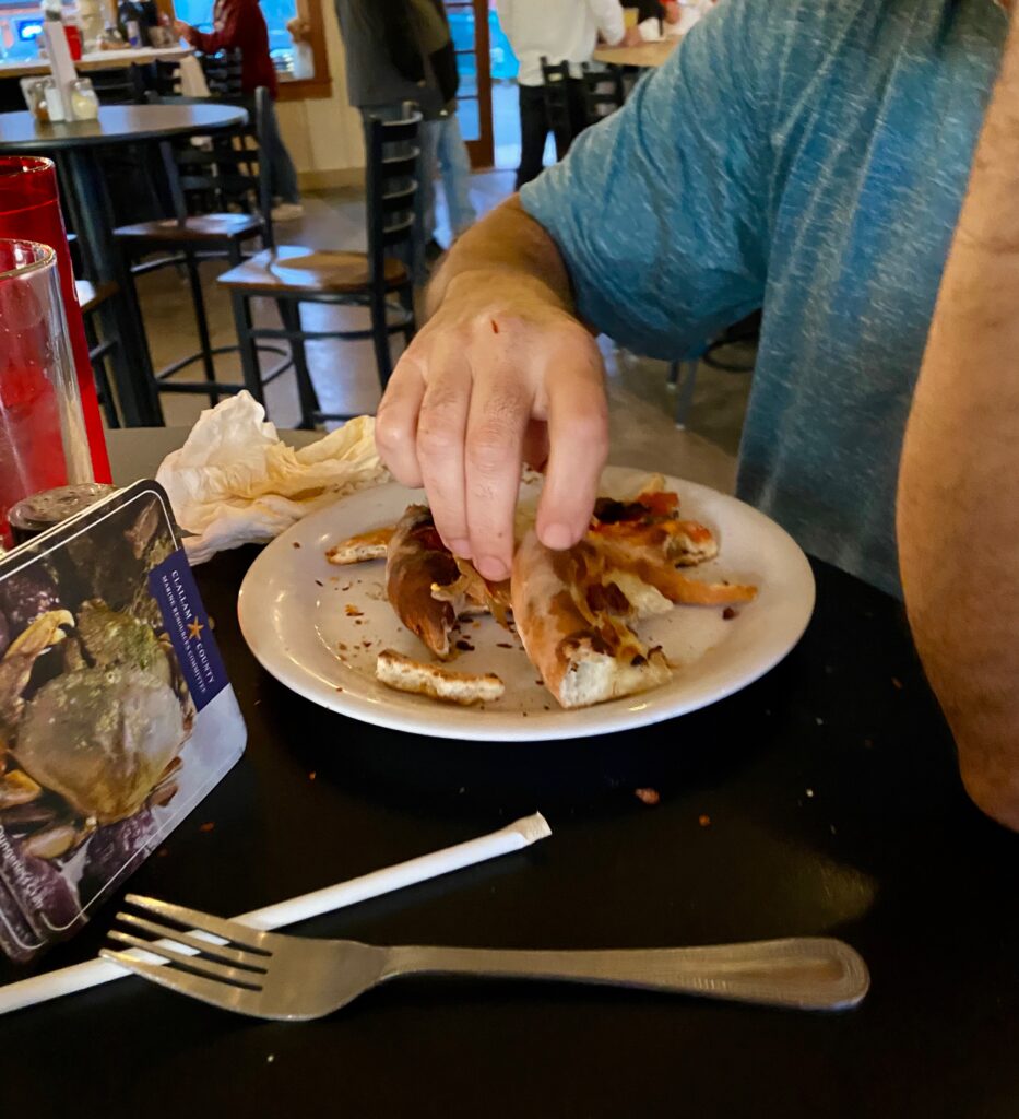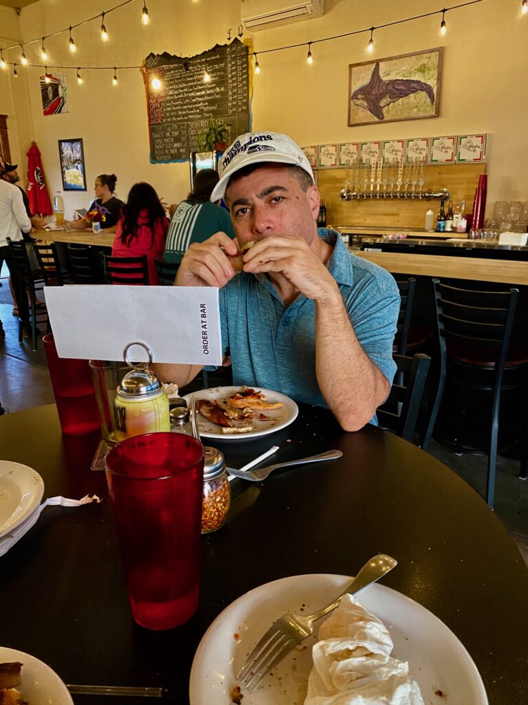 Lookit! We munched thru THREE pizzas! And the food here is yummilicious. We’re at the highly rated Barhop Artisan Pizza & Craft Brewery in Sequim, Washington.