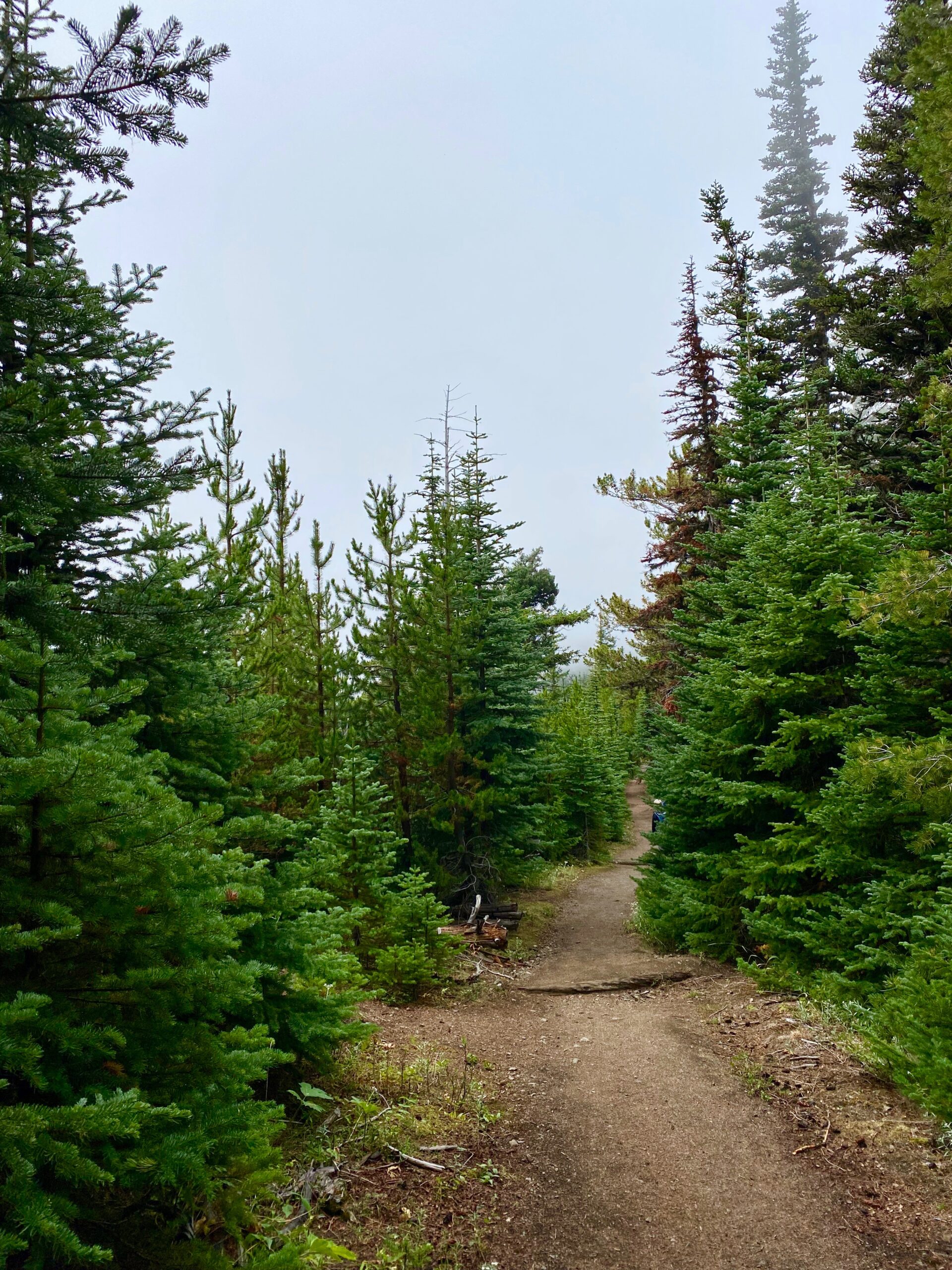 The trail dips downhill into the forest as we set off from the TH. Foggy clouds whip overhead. We meet a group of 5 young men, each from a different country in Europa. I recall one from Spain, another from Czechia, another from the UK, another from Poland, another from Germany or France, not sure. Then we meet an elderly couple from somewhere couple cruising along back to their car. Then we meet a young couple from Ukraine. Told them we’re sorry for what their homeland is going thru with the Russian invasion, but I did wonder to myself why at least he wasn’t over there fighting. But they seem happy to be here now. They were really young, maybe still in college. Again, why didn’t I take any pictures of all these fascinating people? I just didn’t. Fond memories of our brief encounters, tho!