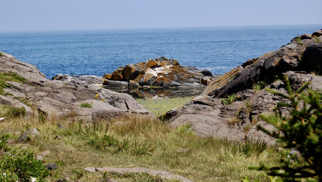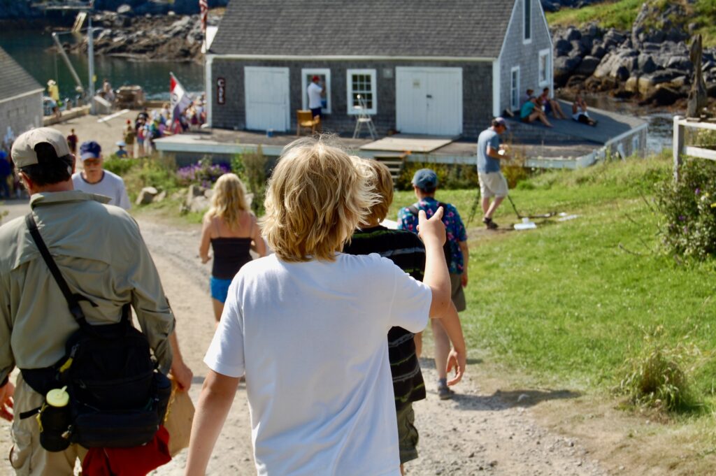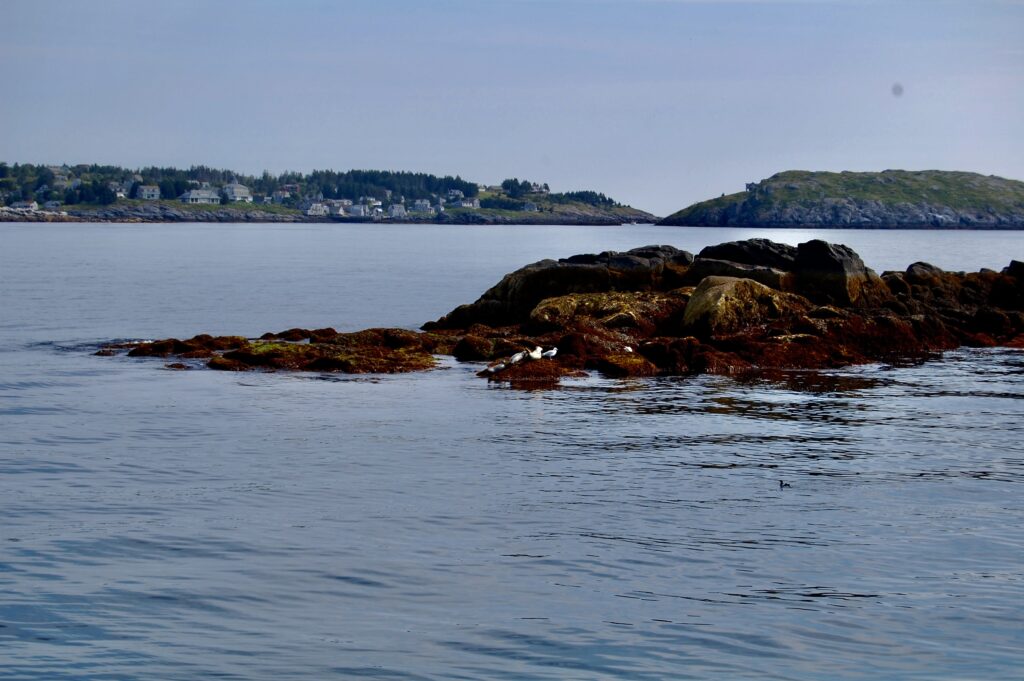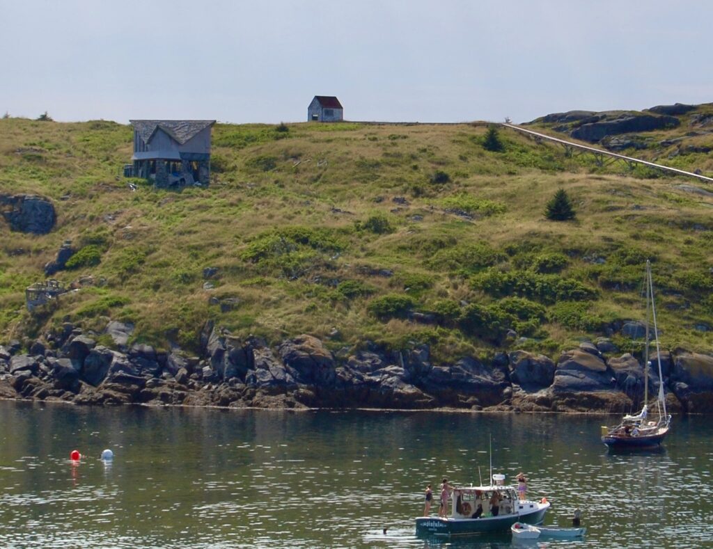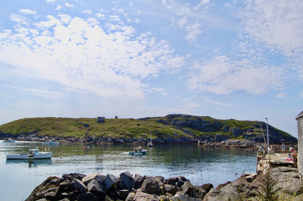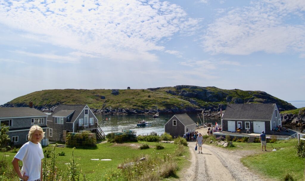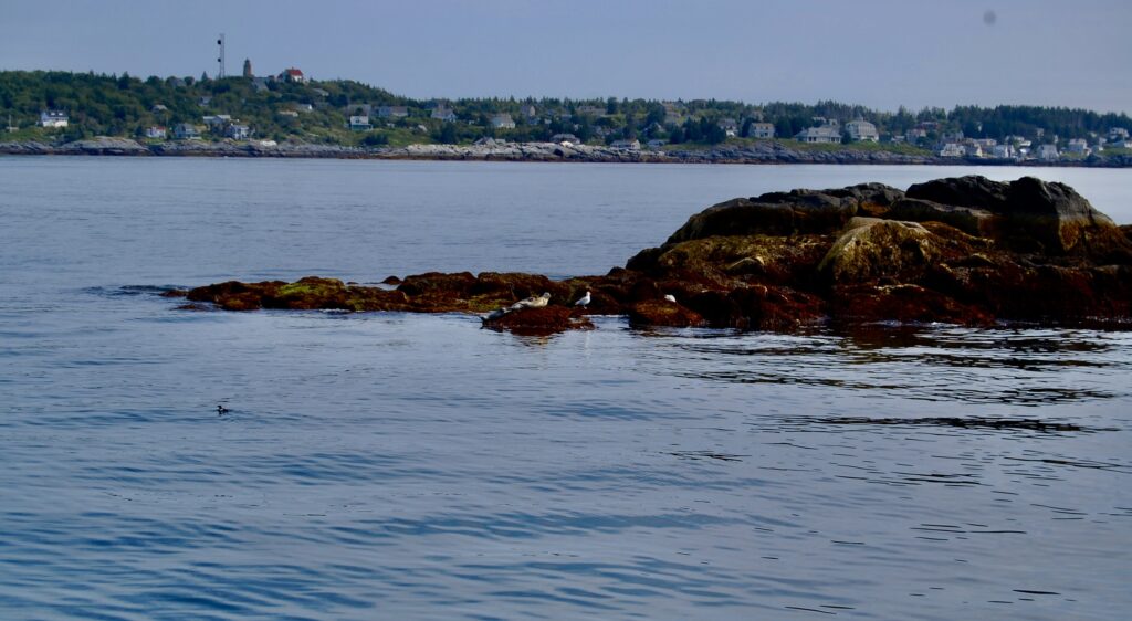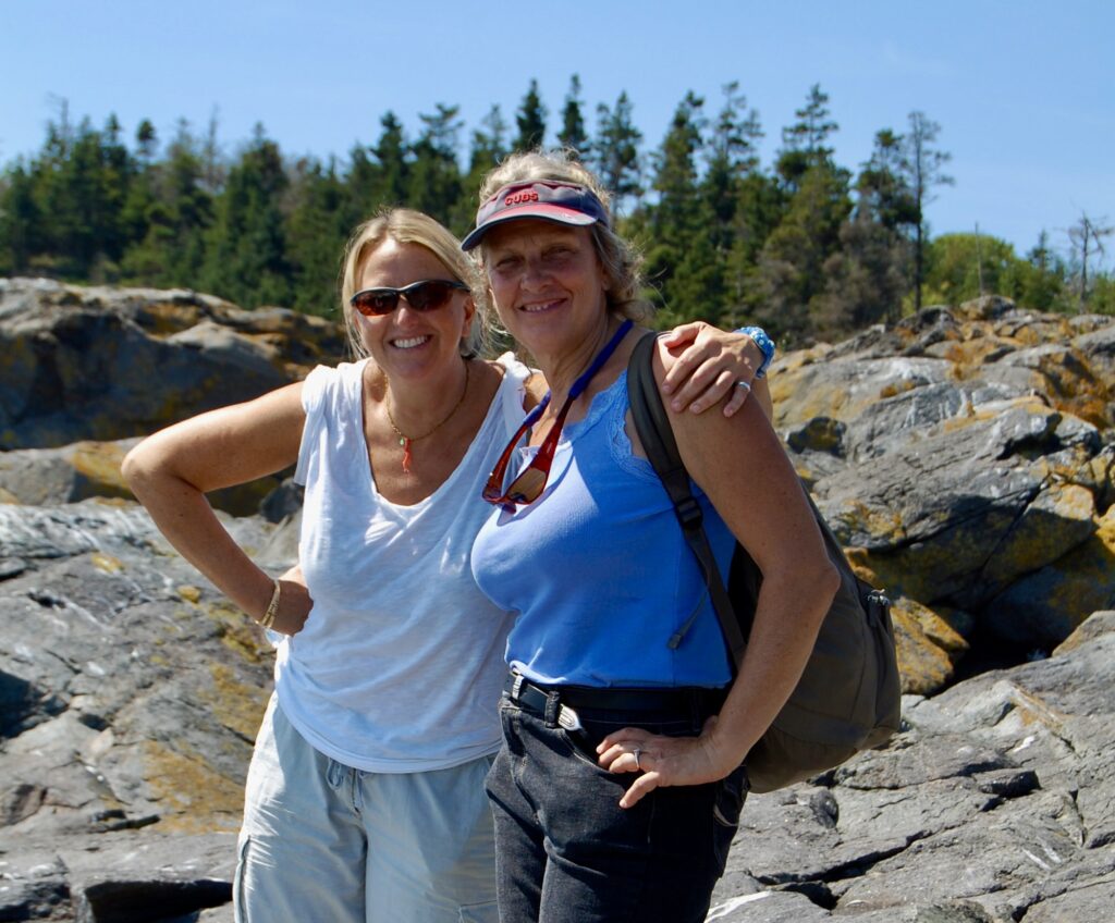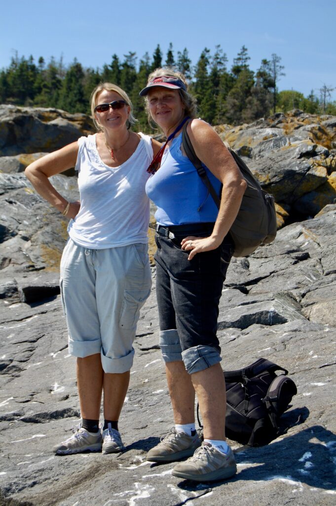 Our trip to Maine was also made possible by Kristina’s close friend Andrea of Connecticut, whose family owned land up in Maine on and around Crawford Pond including the Little Red Cottage. Andrea invited us to join her and her sons there for a rent-free week. We helped out with groceries, chores, shared car expenses, and honored the water restrictions, of course. Andrea’s was a most generous wedding gift, and our blended family of 5 most appreciated it. Here’s Andrea, in green fleece on picture left, with Kristina, on picture right in the white shirt, on the 20-mile roundtrip boat ride to Monhegan Island out in the Atlantic.