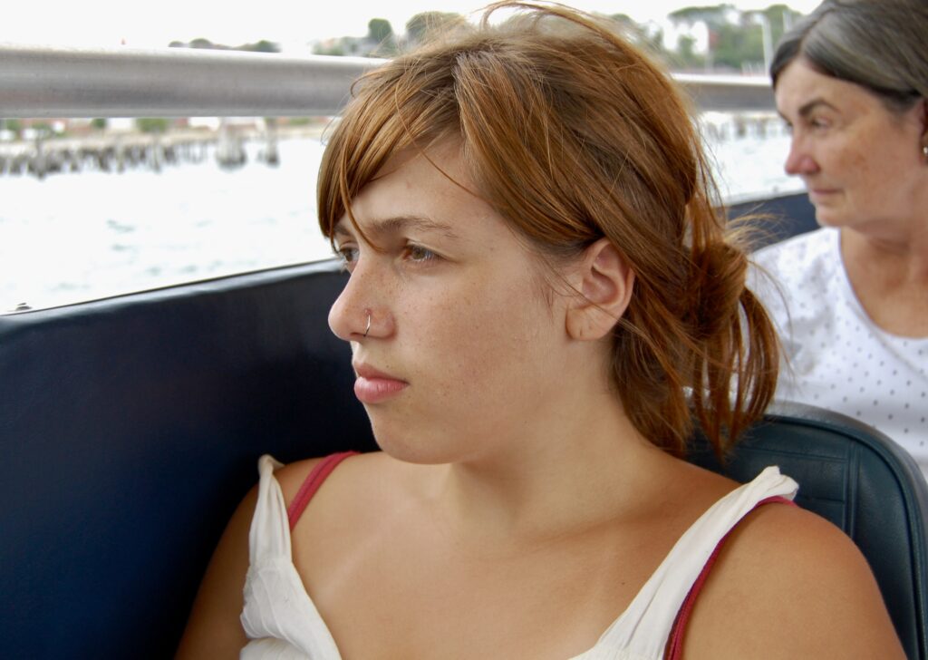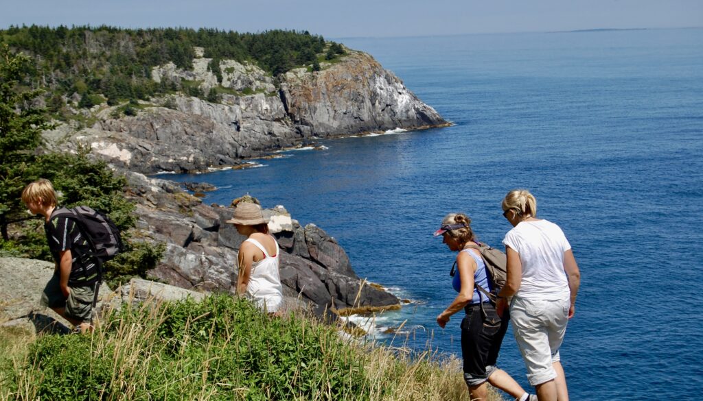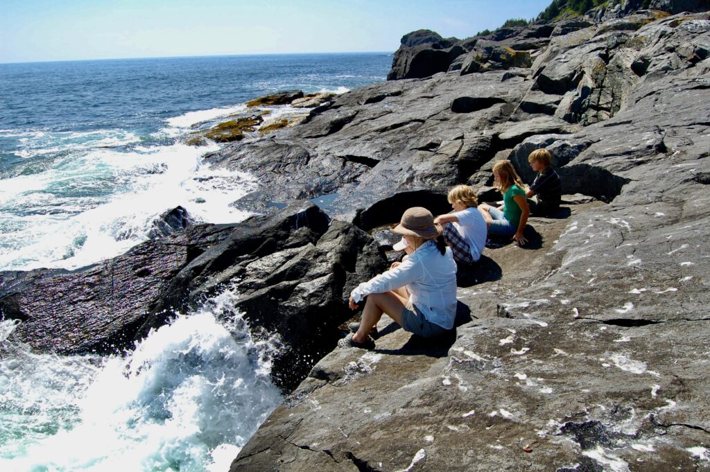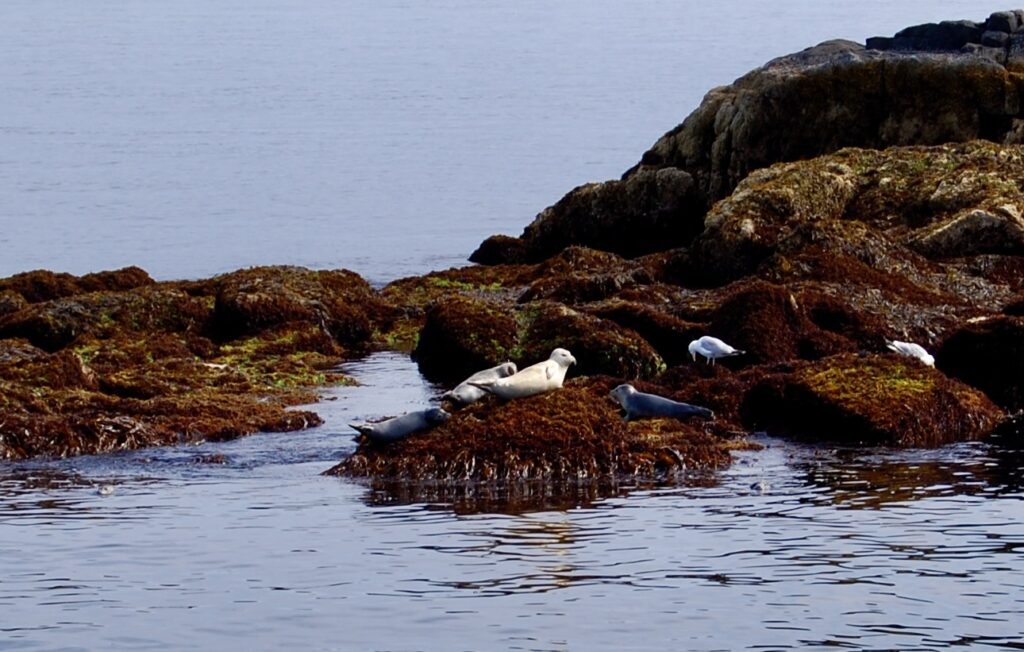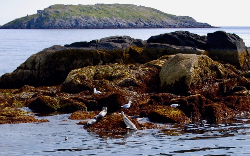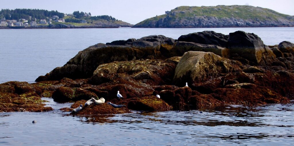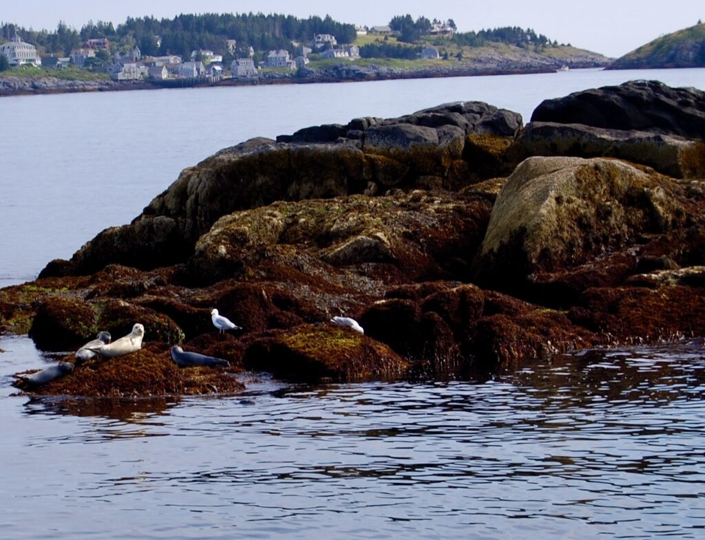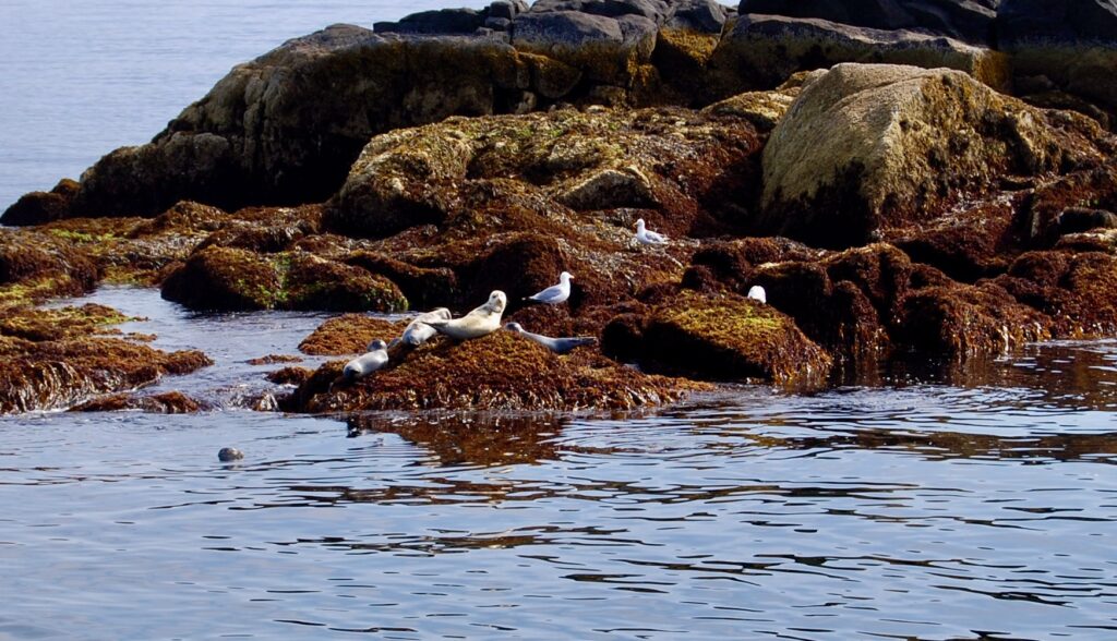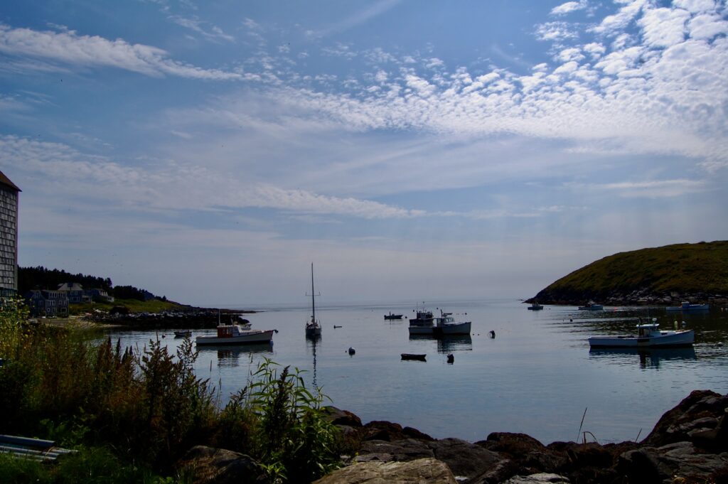 Our trip to Maine was also made possible by Kristina’s close friend Andrea of Connecticut, whose family owned land up in Maine on and around Crawford Pond including the Little Red Cottage. Andrea invited us to join her and her sons there for a rent-free week. We helped out with groceries, chores, shared car expenses, and honored the water restrictions, of course. Andrea’s was a most generous wedding gift, and our blended family of 5 most appreciated it. Here’s Andrea, in green fleece on picture left, with Kristina, on picture right in the white shirt, on the 20-mile roundtrip boat ride to Monhegan Island out in the Atlantic.