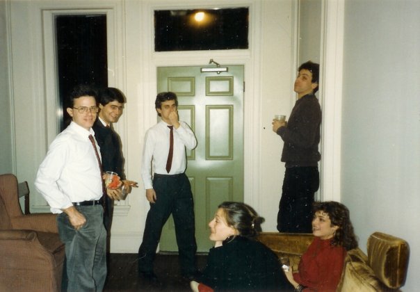 That’s me on the far left in the white shirt with right hand in pocket. We’re at a grad school social function hosted by our creative writing professors down in The Fan at VCU. The guy holding his nose as if somebody farted is Michael Mullen, fellow student from undergrad days at Hampden-Sydney. This foto may’ve been taken by our friend Laura Paul Smith. She posted it up on Facefoot & tagged me in it. This was most likely taken in 1985. Good Lord ‘n’ Lady, we were so TINY back then!