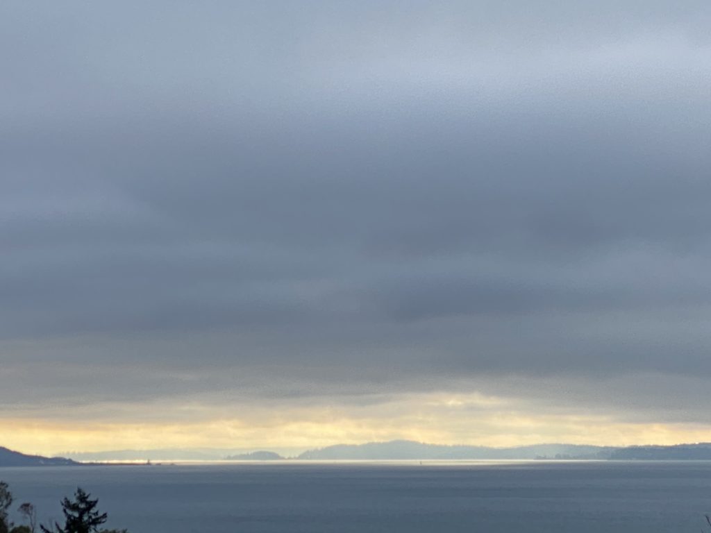 We contemplated the winter sun, the sea, and overcast skies. To our surprise one lone boat was way out there crossing the Sound. Then it dawned upon me the Salish Sea appeared so bereft of boats because of the threat of tsunamis from earlier in the morning. Hunga-Tonga-Hunga-Ha’apai, a submarine volcanic mountain in the South Pacific, had exploded in spectacular and deadly fashion. Tsunamis shot across the Pacific in all directions, battering other islands including Hawaii, Fiji, and New Zealand. These walls of water reached from Japan and Australia to the entire western coasts of the Americas all the way from Alaska to Chile. I wondered if any waves crashed up on Kamchatka in the Russian Far East.