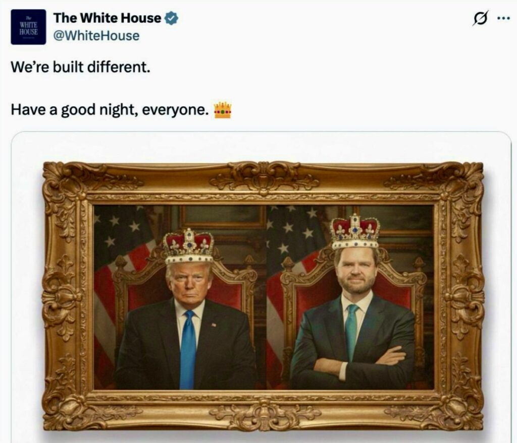 Directly from one of the White House public socmed feeds posted after the protests. Trump & Vance think they’re being sarcastic, but the irony is too great. A screenshot from the public social media commons.