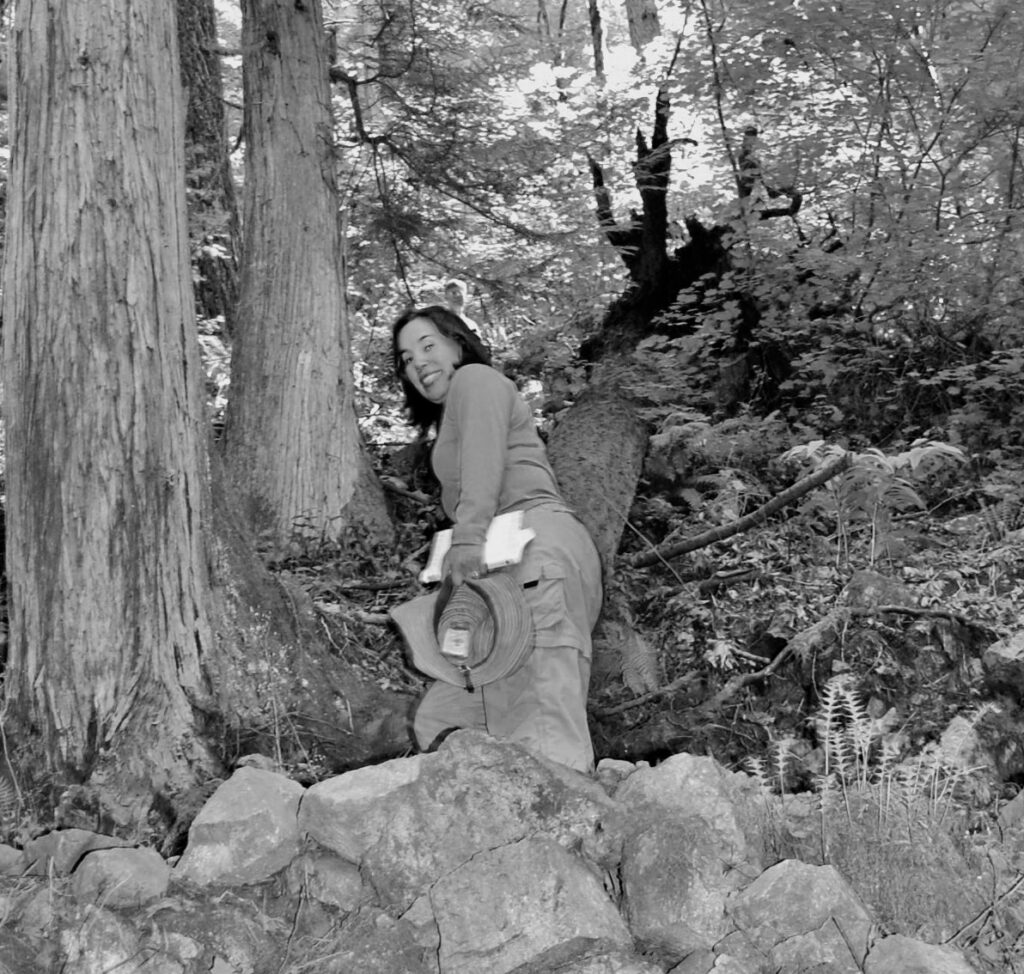 First, however, we had to hike up to the top of Poo Poo Point on the short, steep Chirico Trail. It’s about 3.8 miles RT with some 1,760 feet of elevation gain. The first push up off from the flats is steep and well-designed. Here Kristina, only 41 years along in time, heads on up the trail.