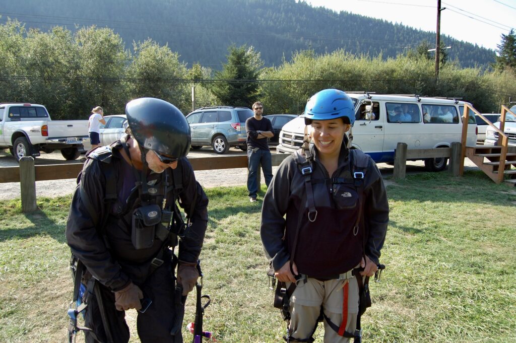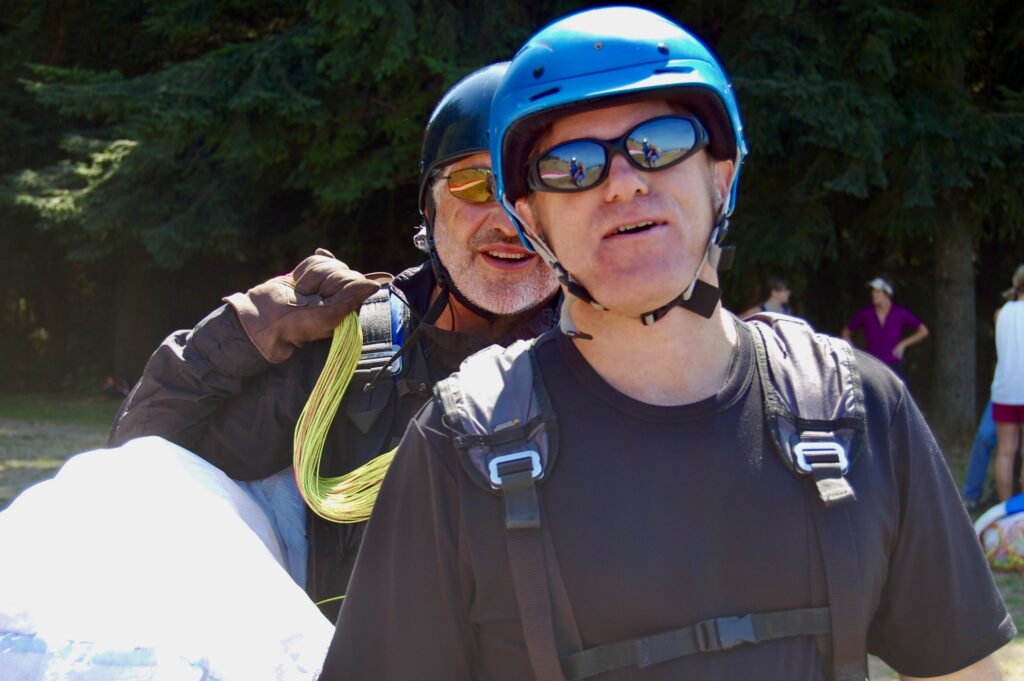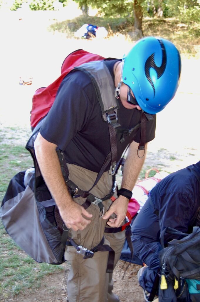 Another tandem duo prepares to launch. John & I are in foto right looking like we’re in a weird, poofy, 2-person ball gown.