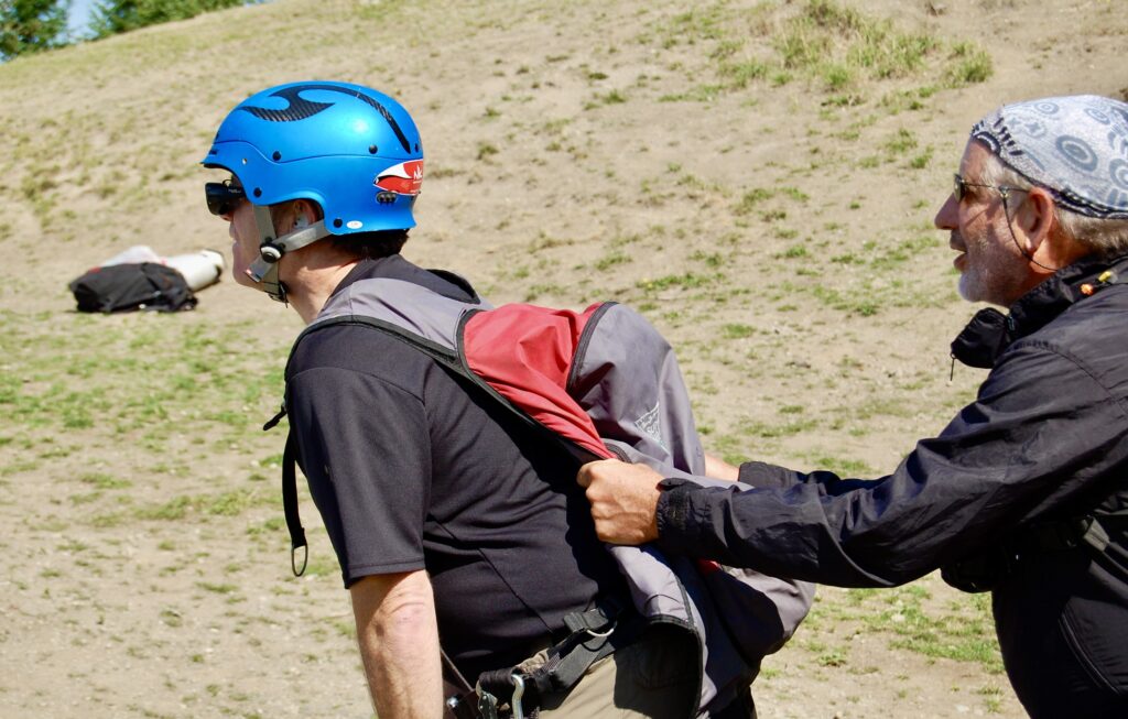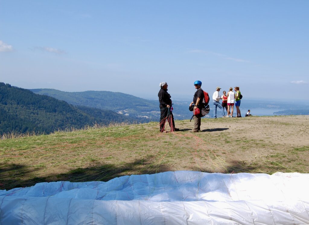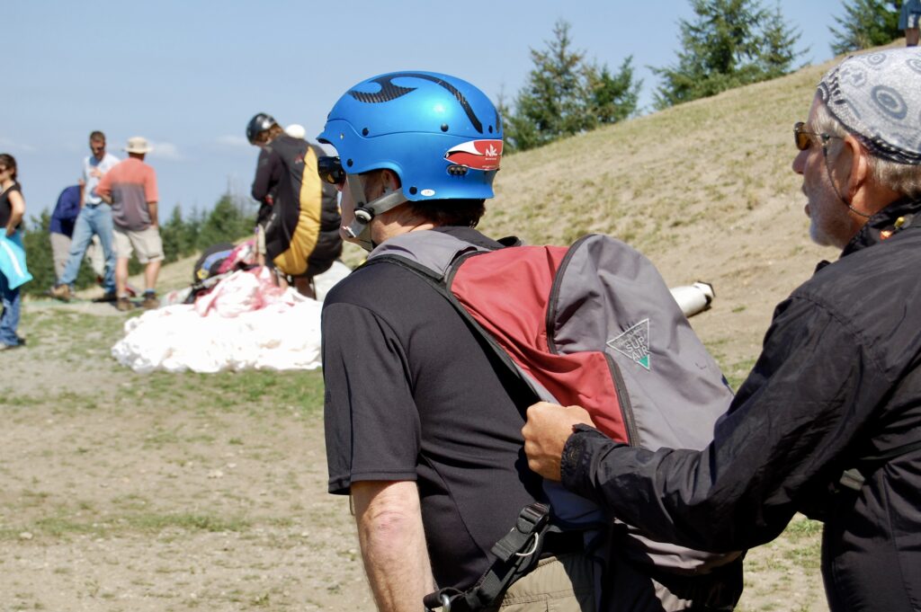 What follows are a series of fotos taken by both Kristina and I that show some of the many steps it takes to prepare to launch a tandem paraglider. As this is written 15 years after the event, it’s also a snapshot in time, a slice of Americana, illustrating people having a good time even in the midst of the Great Recession. At that time, all three of us friends had endured unimaginable losses, as did so many other people we knew. Life goes on, tho, and we chose to fly.