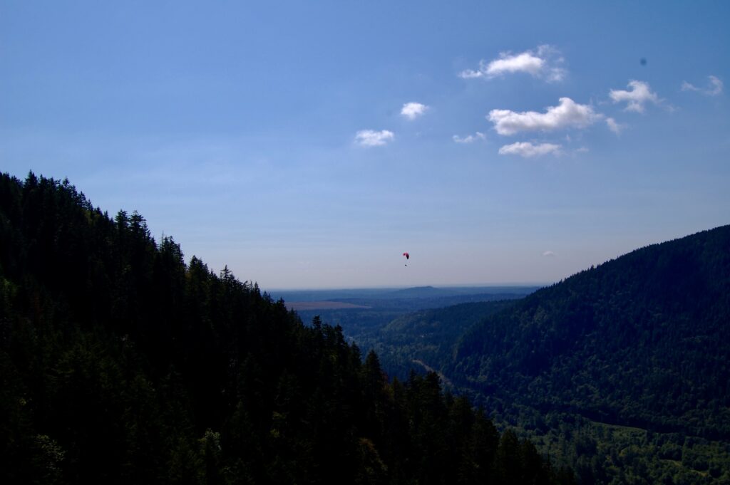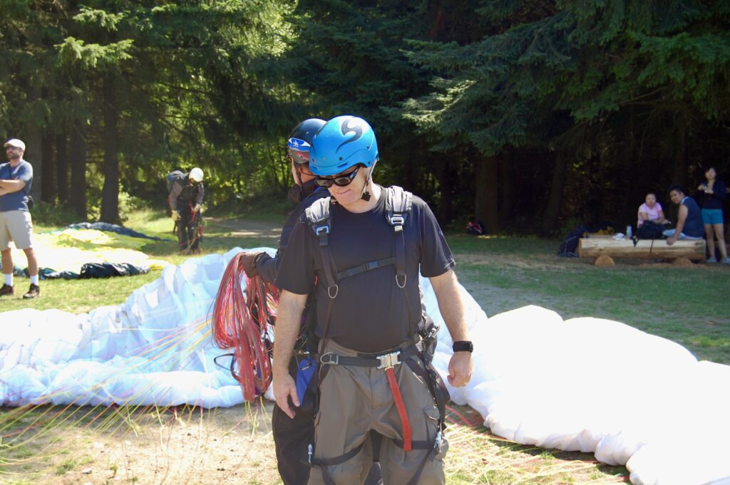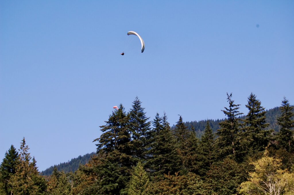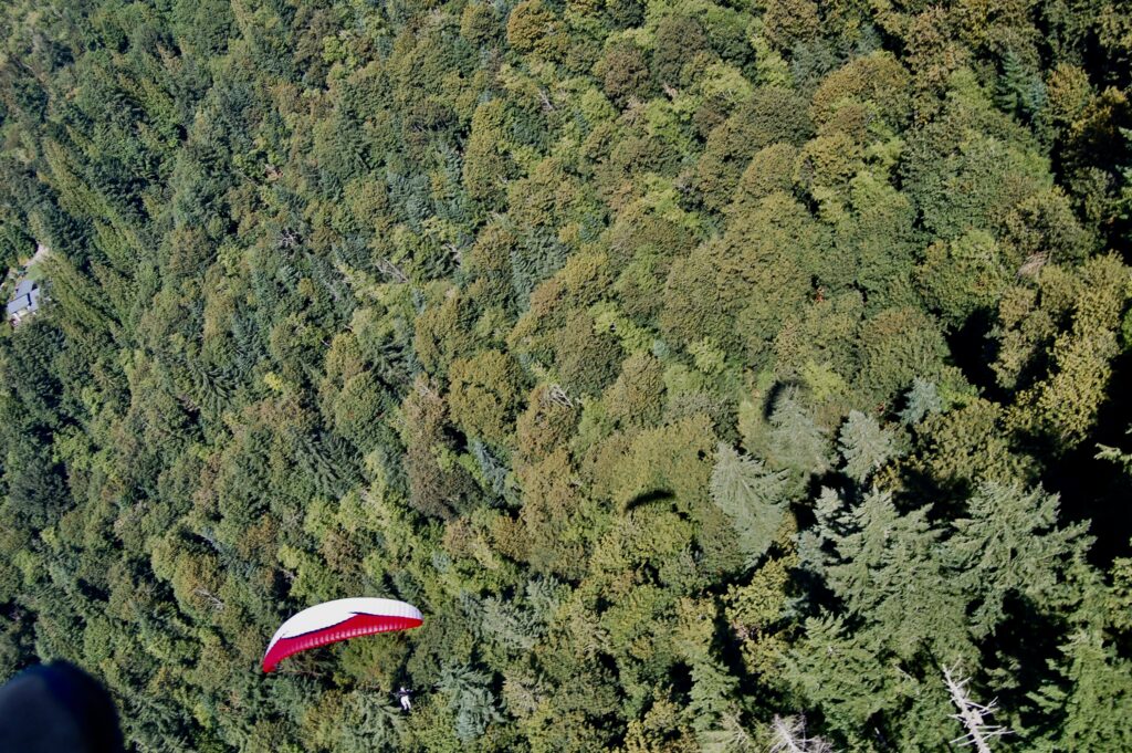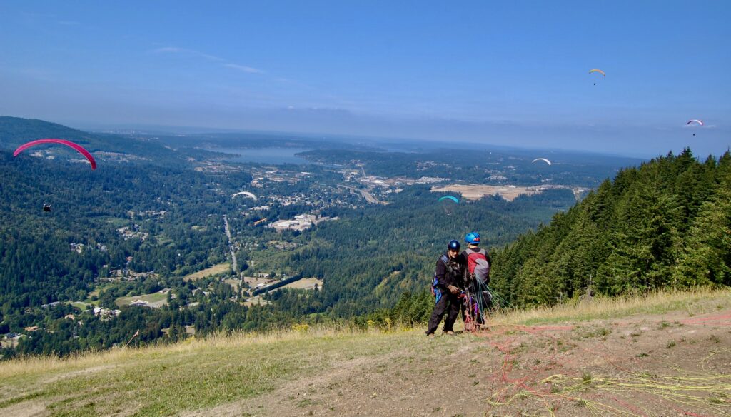 And we’re in the air! Zooming around Tiger Mountain & over the valleys below and alongside other paragliders, too.