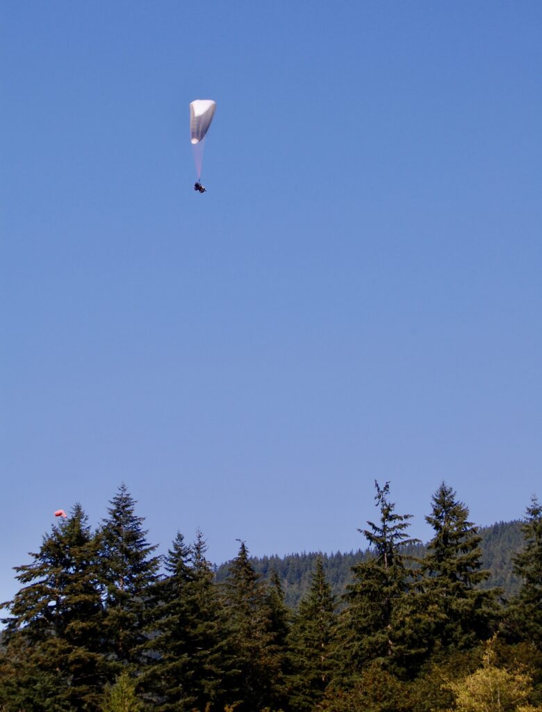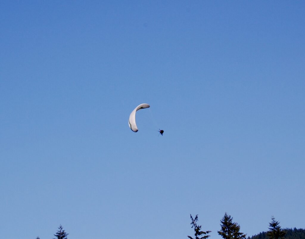 Kristina, my wife at the time, and I planned to join my old friend John to do what we see someone else like this paraglider doing here. From Poo Poo Point on West Tiger Mountain. Monday 20 August 2009.