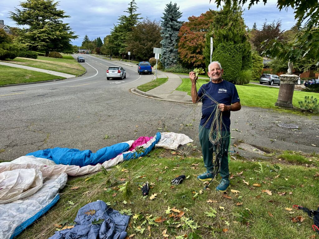 Fifteen years later John’s still at it. Here he is 80 years young, about a month away from his 81st birthday, paragliding above the bluffs of Magnolia in Seattle over the edge of the Salish Sea. Foto taken by unknown observer for John who in turn shared it with me, Thursday 26 September 2024.