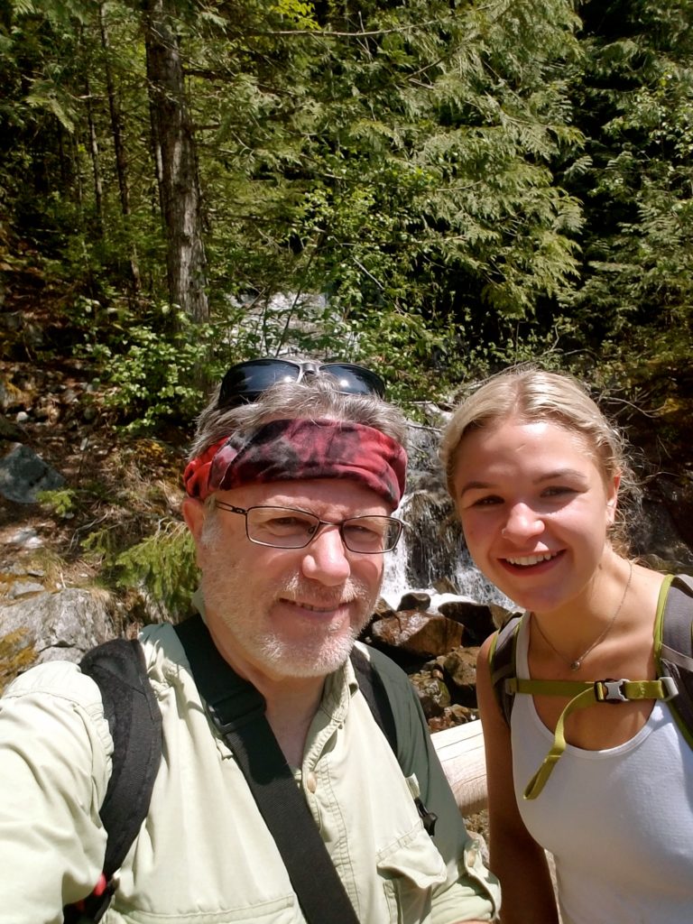 A 60 year old dad & his 20 year old daughter go on their first hike together in nearly 4 years, just the two of them without any other family & friends. Double selfie shot on Thursday 30 June 2019.