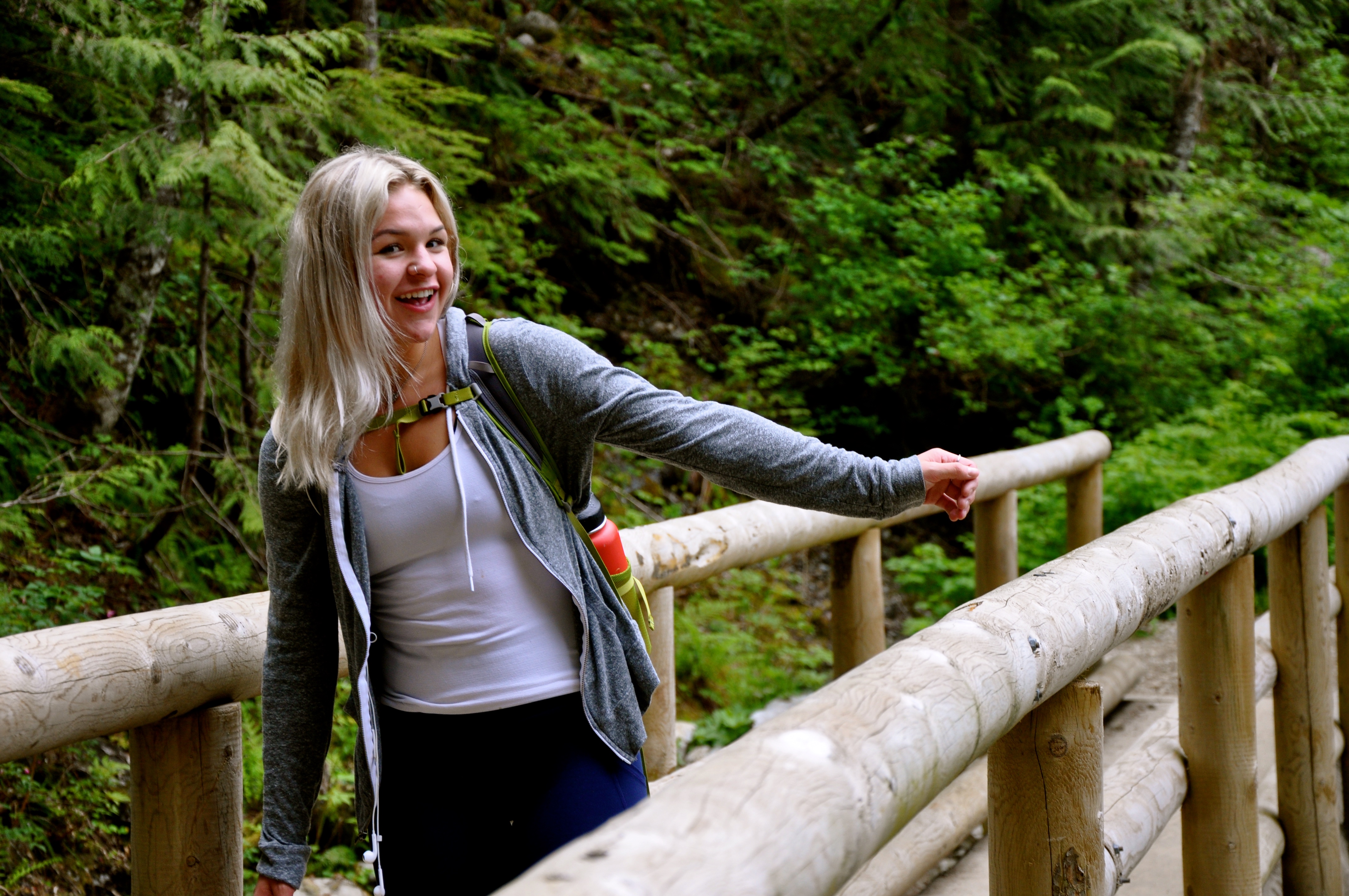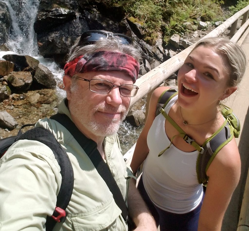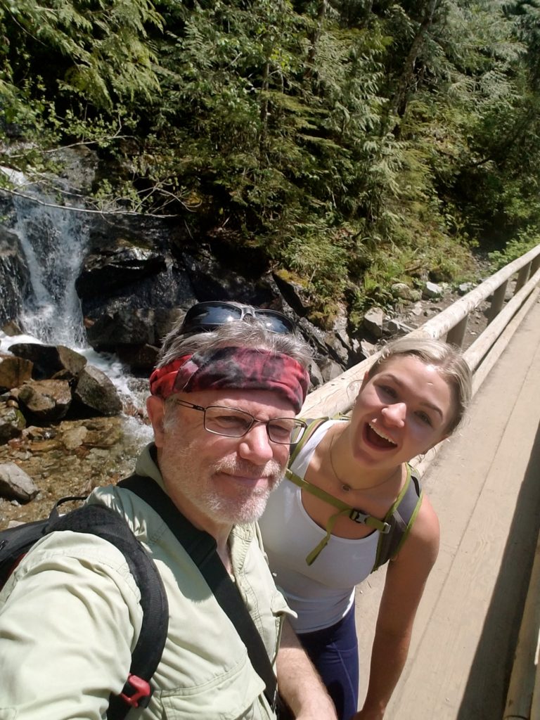 Father & Daughter. William & Kathryn Bass back on the bridge thru the Falls on the way back down to the trailhead.