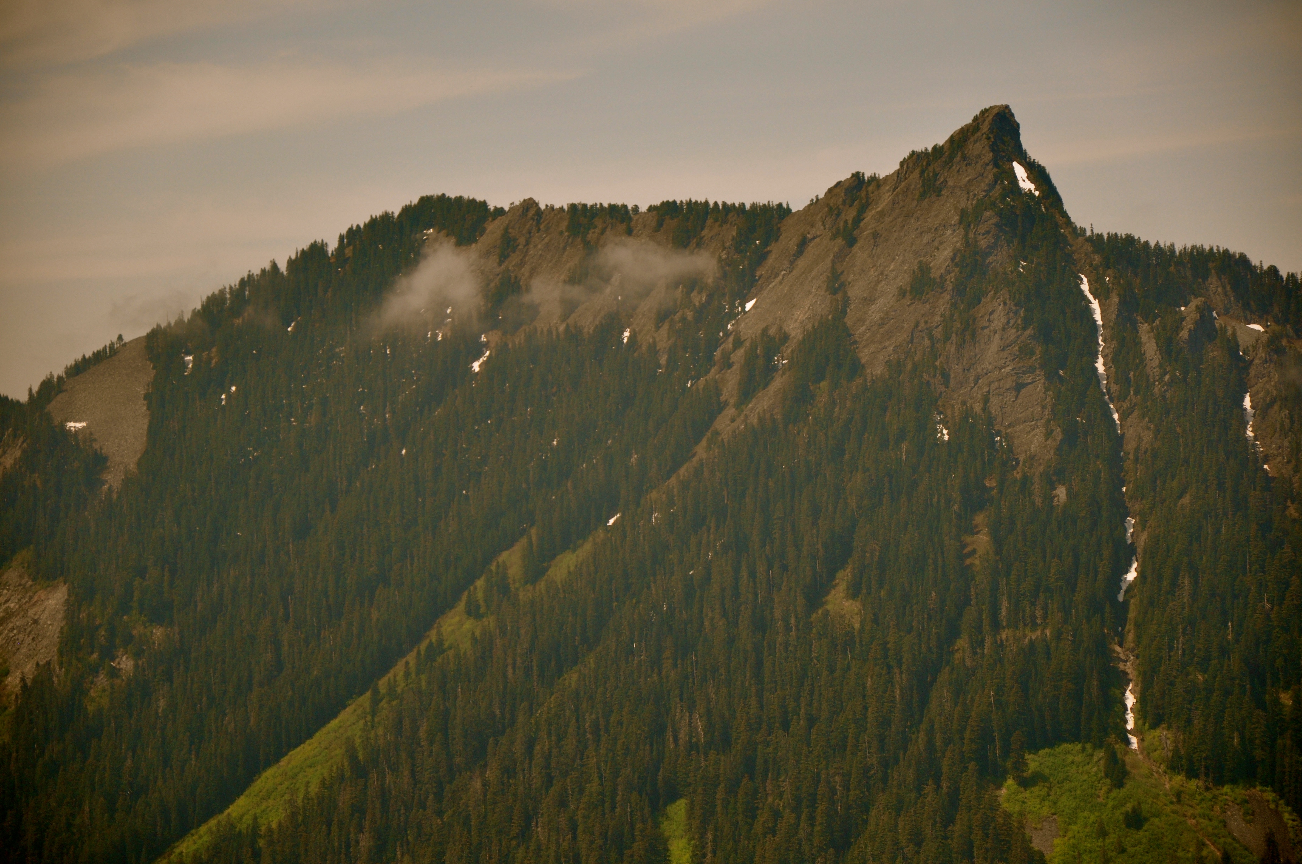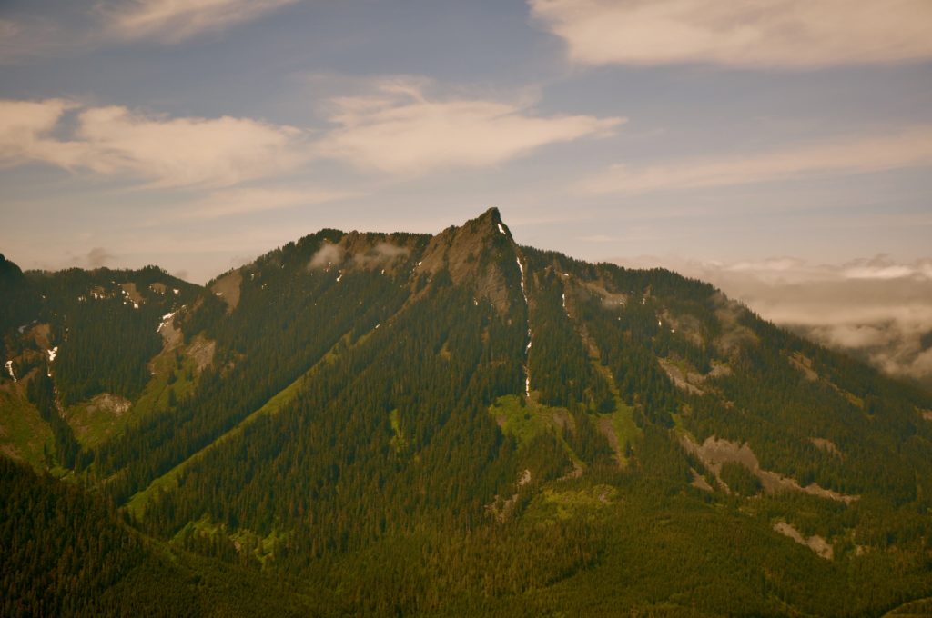 McClellan Butte is in the National Forest but outside the Alpine Lakes Wilderness. Both are separated by a corridor of roads & rail. The peak stands at 5,162 feet or 1,573 meters tall.