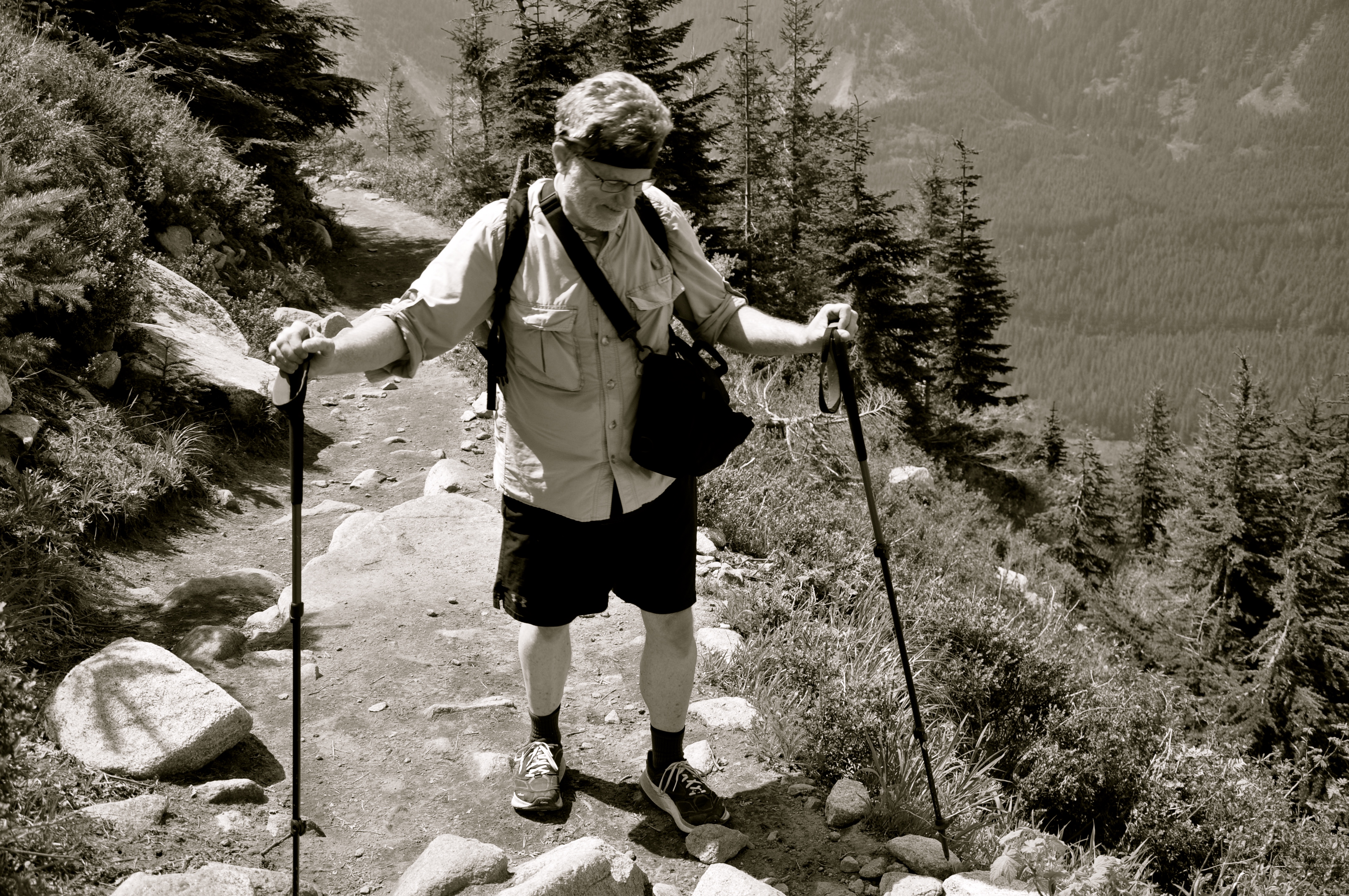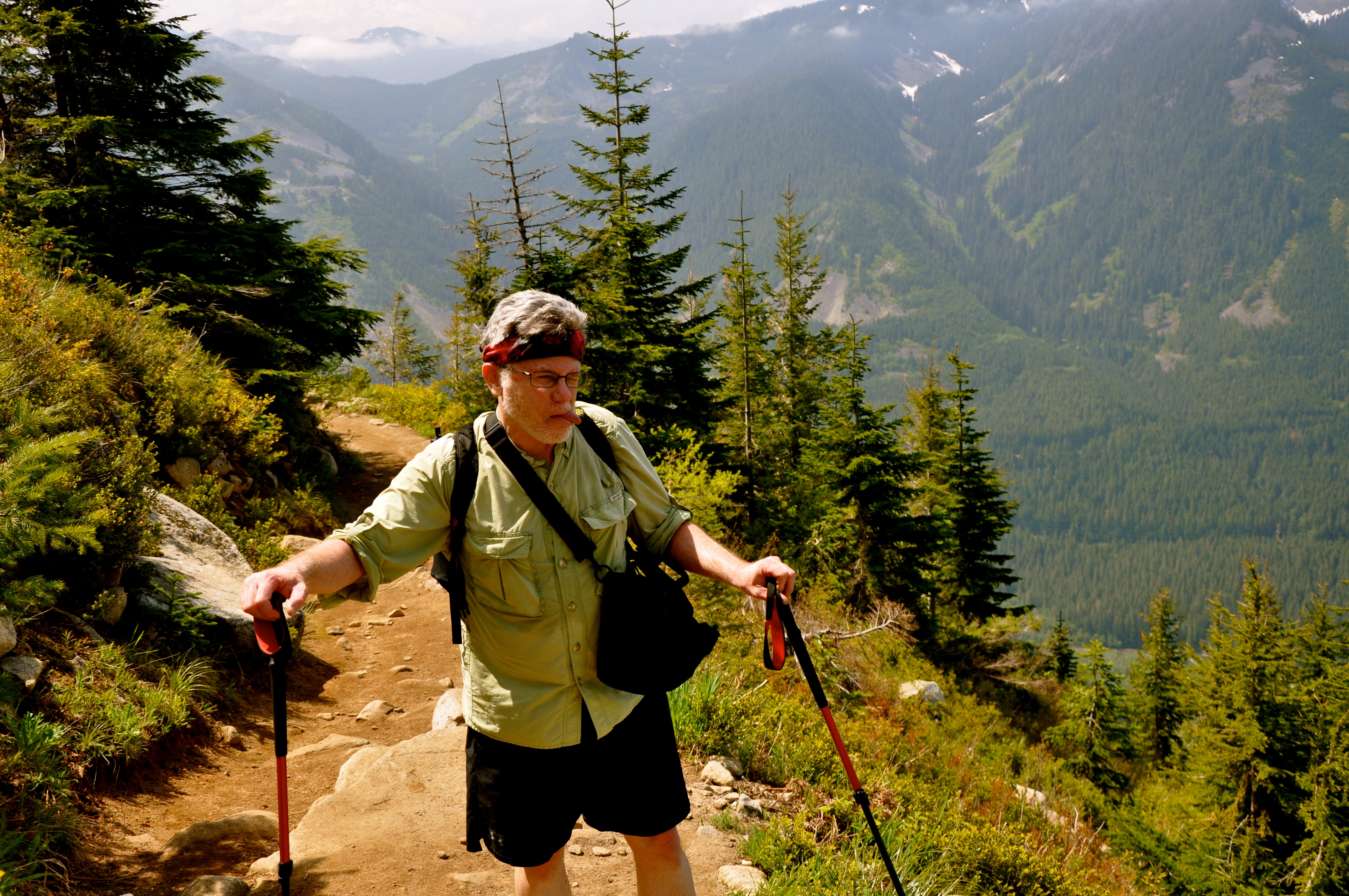 Pausing to rest a sec. Catch me breath, y’know. I’m only 60 & even tho I feel outa shape I know I’m still in better conditioning than many younger than me. Aging still takes a toll no matter what. For me aging is the accumulation of injuries from illnesses & trauma over time, including to neuromusculoskeletal systems and skin. Now my daughters all zoom uphill faster than me. I’m so happy for them, and slowing down gives me time to reflect and pretend I’m wise. My intention is to get outside and hike these mountain trails as long as I can. Hell, it’s only 30 more years before I’m 90!