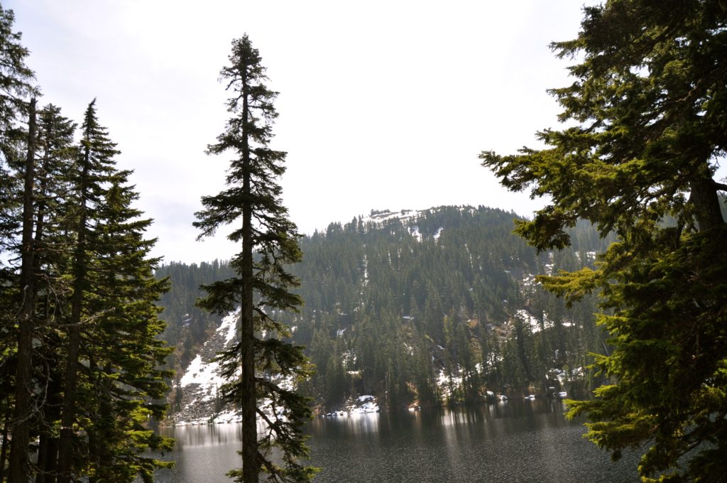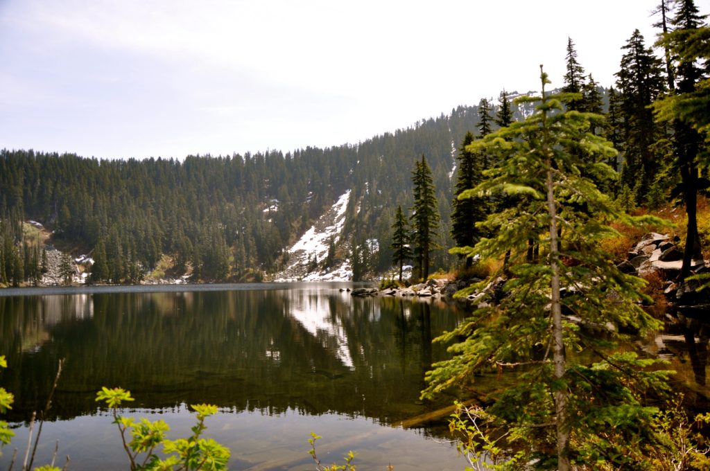 Mason Lake with the summit of Bandera Mountain rising towards the right out of sight to a steep but mellow 5,241 feet or 1,597 meters.