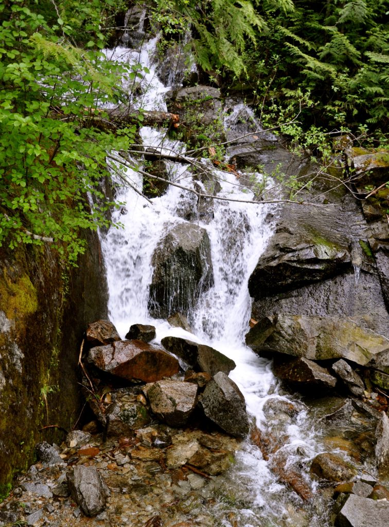 More falls cascade down the mountainside. Mason Creek pours forth from Mason Lake to eventually flow into the South Fork Snoqualmie River.