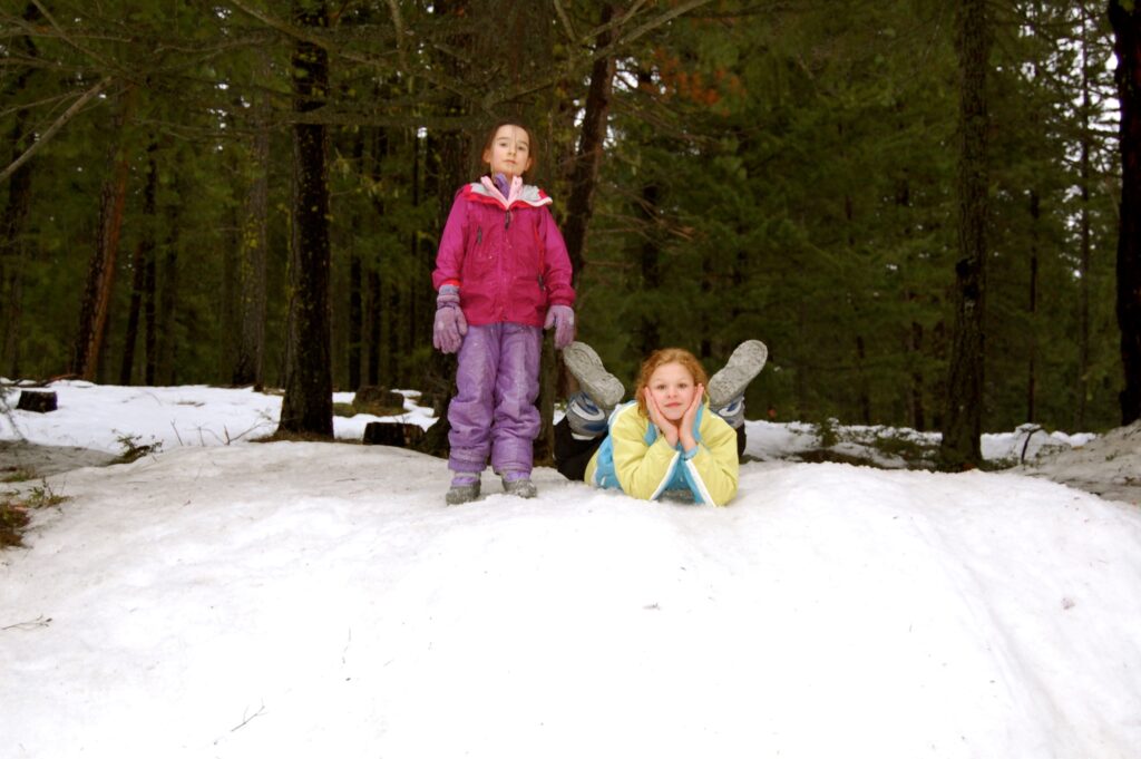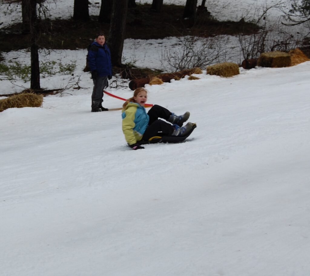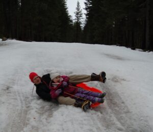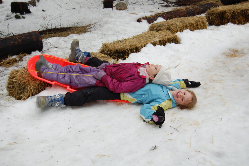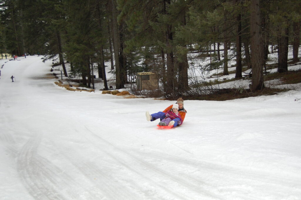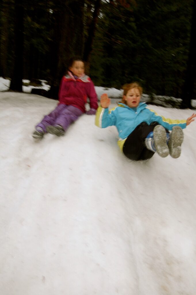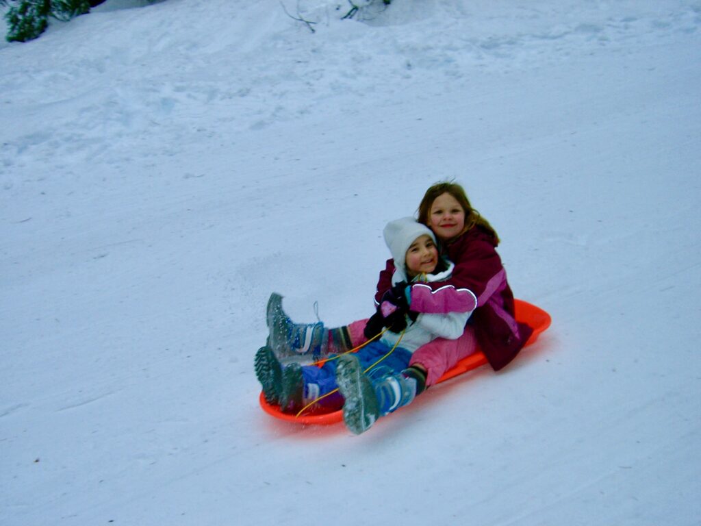 Talia & Kate wrecked & laughing at the Sledding Hill over in Lake Wenatchee State Park close to the River House. A big day for Talia as she got back into snow sports after breaking her leg in a sledding accident on the same run two years earlier. Taken on Monday 15 February 2010.