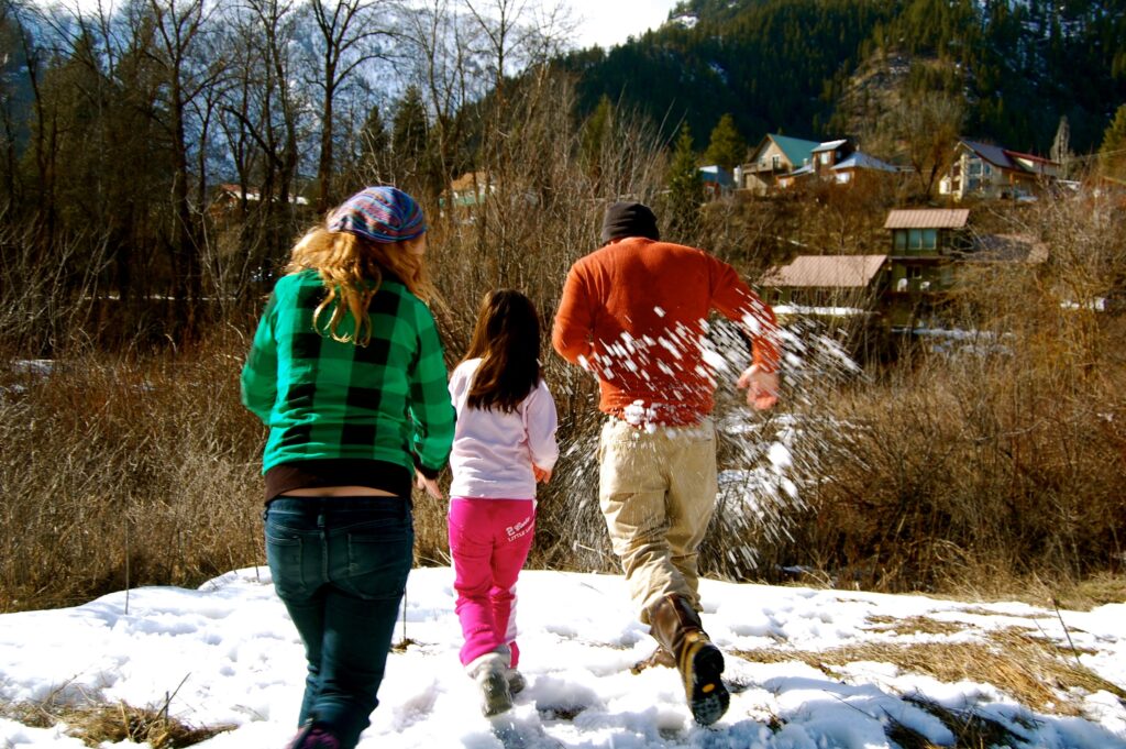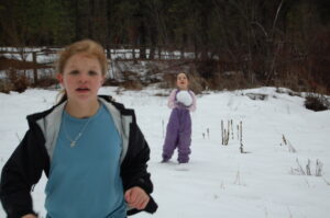 Kate & Talia together in the front yard of the River House. It’s our last time visiting our beloved home in the great outdoors as a family. We stayed downriver in Leavenworth in our timeshare hotel for a days on a school break. Would’ve rather stayed here at the River House, but we had all the water turned off and the electricity disconnected. So we hung out a while to check on the property as the short-sell process continued and let the kids run around and play. Monday 15 February 2010.