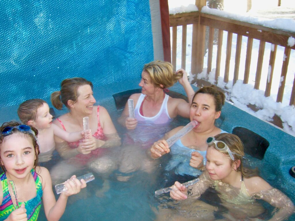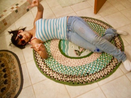 Kids were at the right age for goofy pranks, too. Here my oldest, Morgan/Dylan discovers, well, this shower stall doesn’t quite work like one of Dr. Who’s TARDIS booths. This one here just sucks people screaming down the drain merrily, merrily, merrily into oblivion. OK, well, I don’t know exactly what she’s up to here, LOL! But Emily does! Mid-January of 2008.
