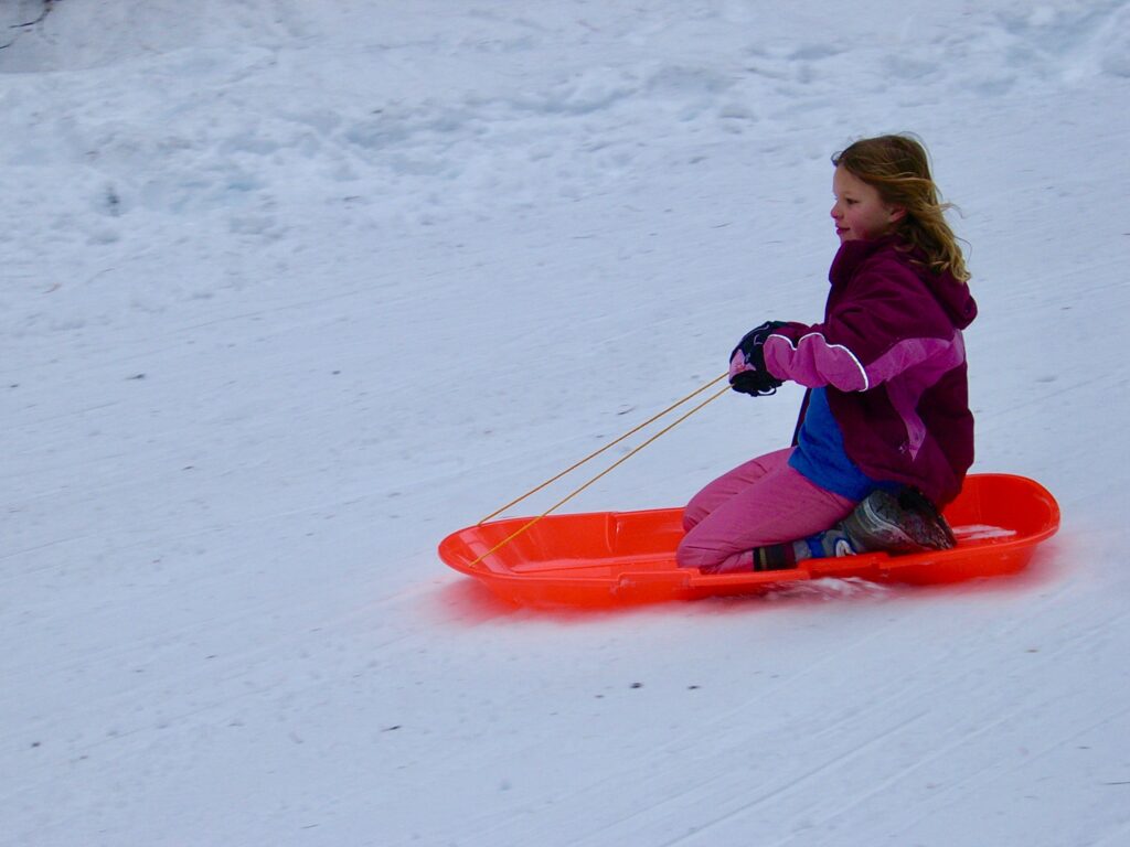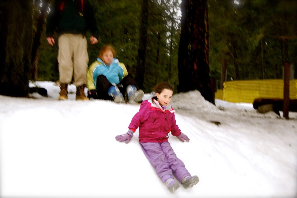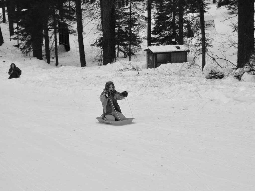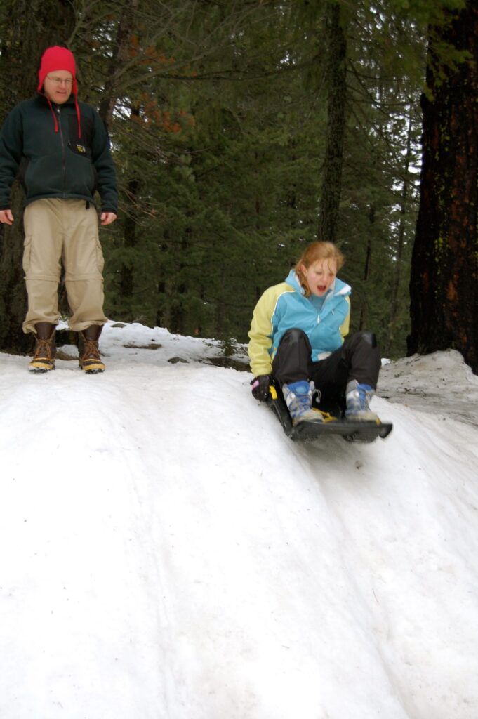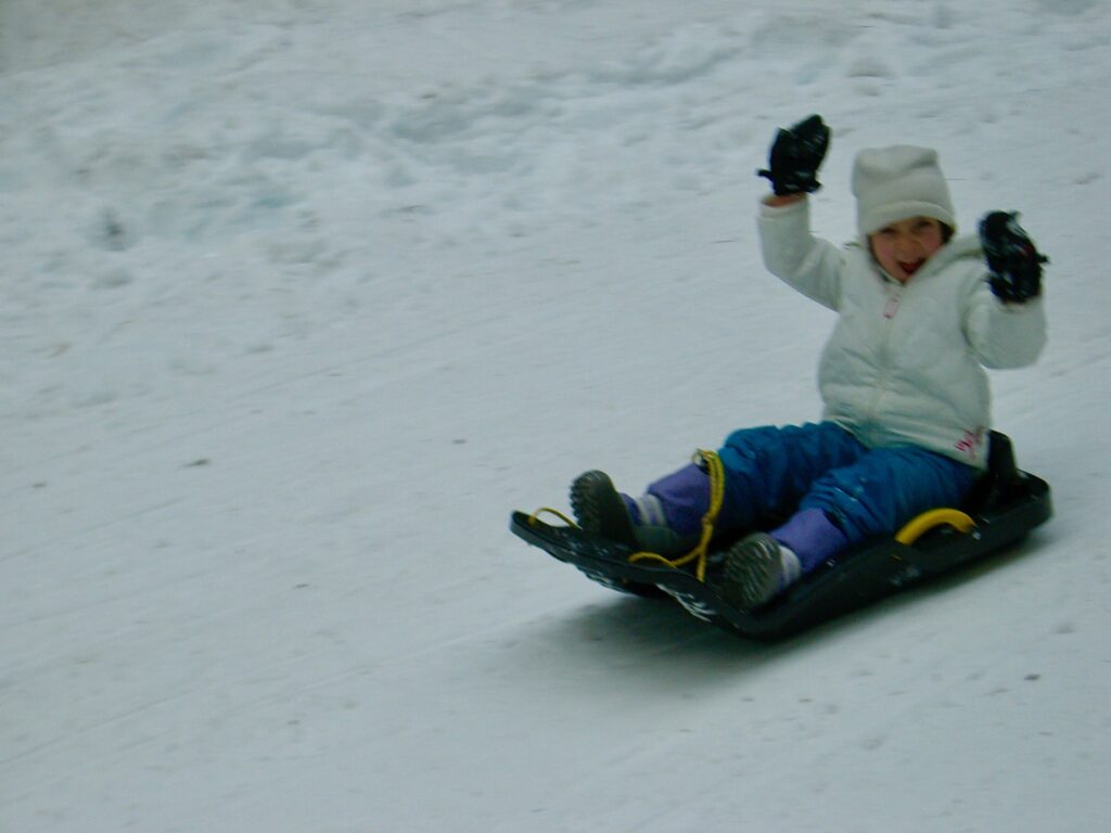 Wheee! Look at me! Talia sledding at Lake Wenatchee State Park near the River House, Sunday 20 January 2008.