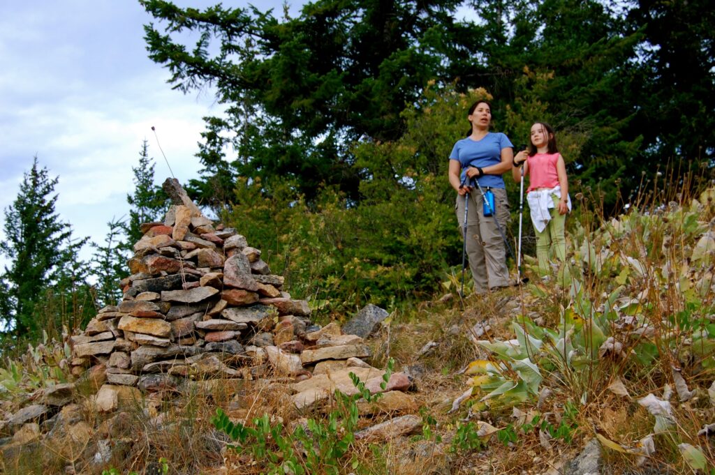 YAY, we made it! Kristina & Talia atop Beaver Hill and looking out towards Plain, Bonanza, & Mule Tail Flats. The true summit stands 2,860 feet or 826 meters tall. Foto by the Author on Saturday the 25th of July 2009.