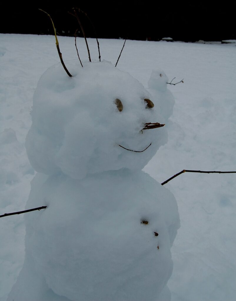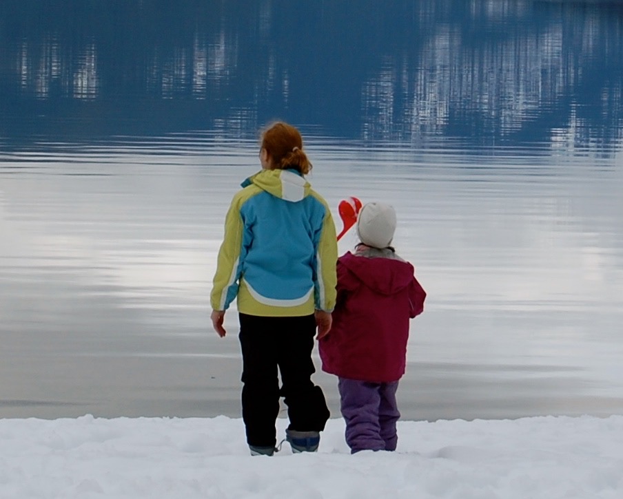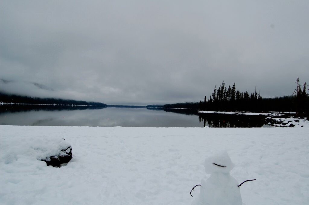 Snowman others had built earlier and left guarding the lakeshore with a smile. Morgan was enthralled with this snow person. We were mostly alone out here, and the loneliness felt heavy despite the beauty.