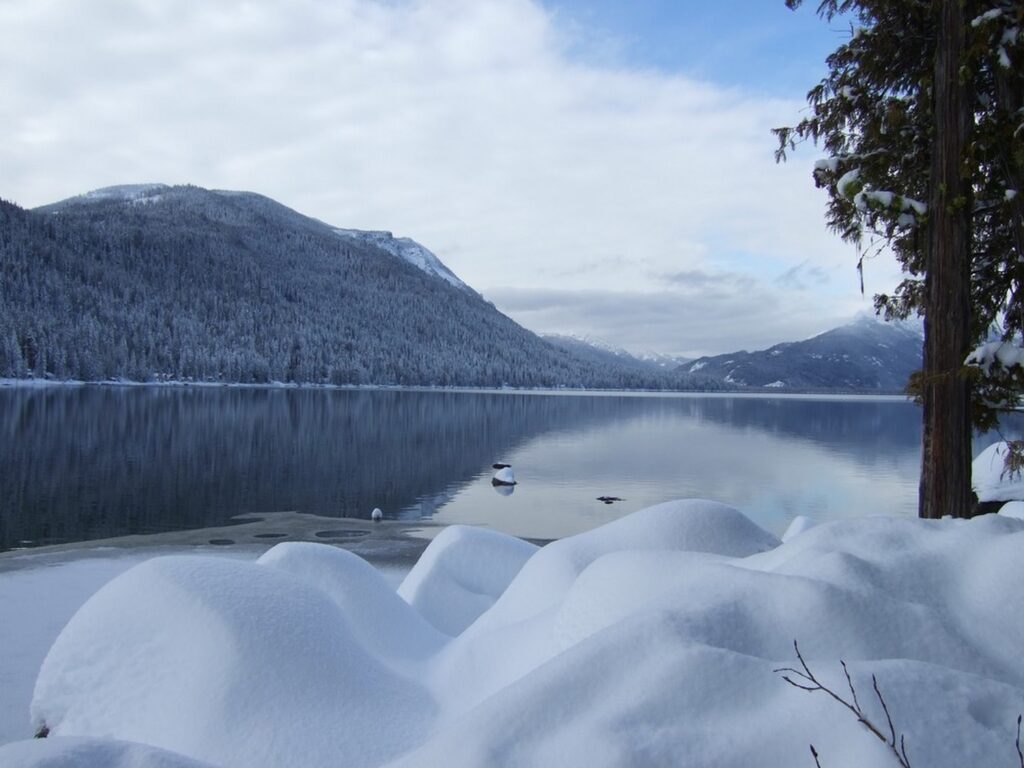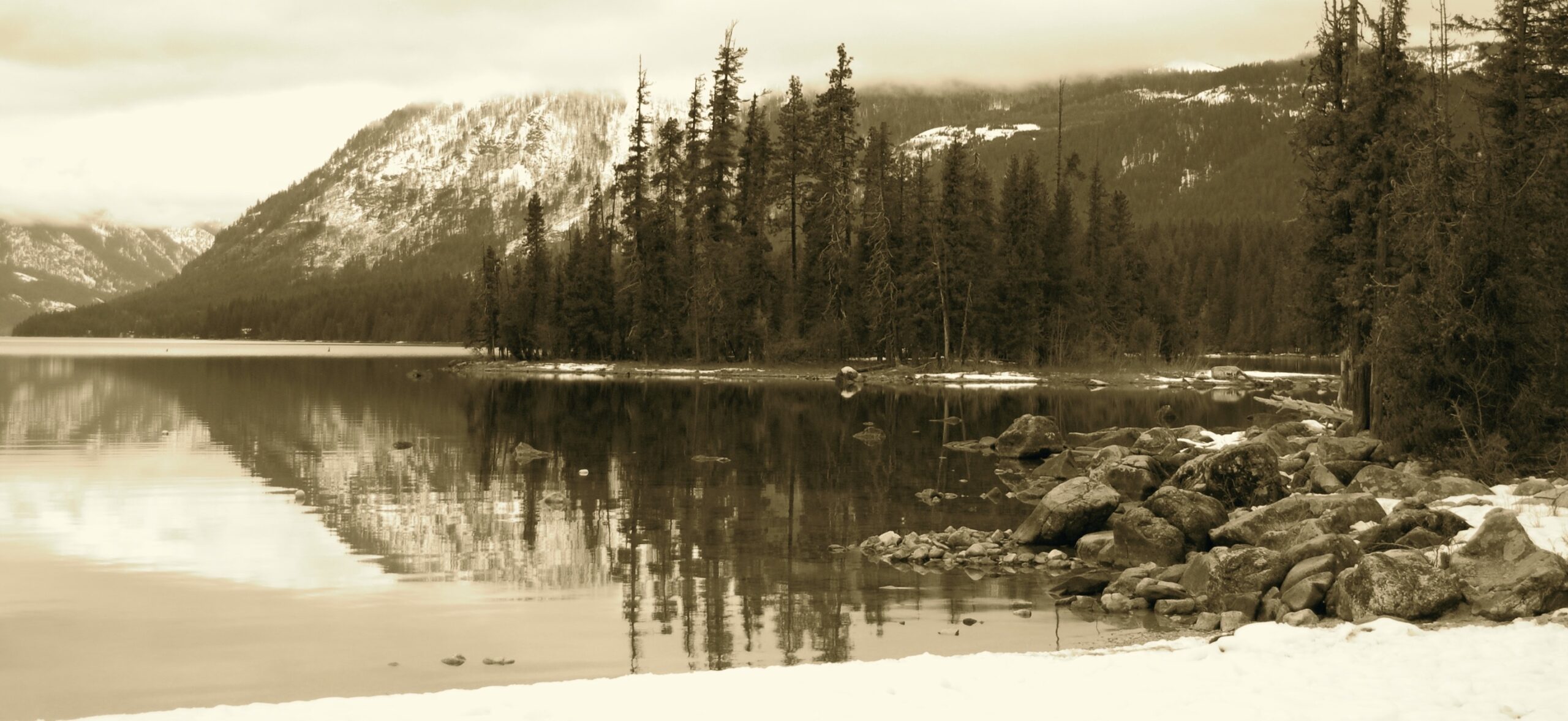 On the South Shore beaches of the lake looking over at Emerald Island & Dirtyface Peak, Lake Wenatchee State Park & Okanogan-Wenatchee National Forest, Monday the Day after Valentine’s Day 2010. This lake and surrounding forests and rivers with their little resort towns were one of our favorite stomping grounds for our blended family for many years including long before we had the River House. We enjoyed them across all four seasons, and altho it’s different now, still do on occasion.