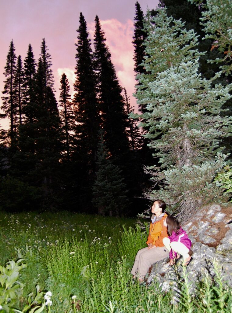 Mother & daughter share a moment of tenderness & awe during our night camping in Spider Meadows, up in the Glacier Peak Wilderness past Wenatchee and Fish Lakes. One of the fun trips based out of the River House. 26 July 2009.