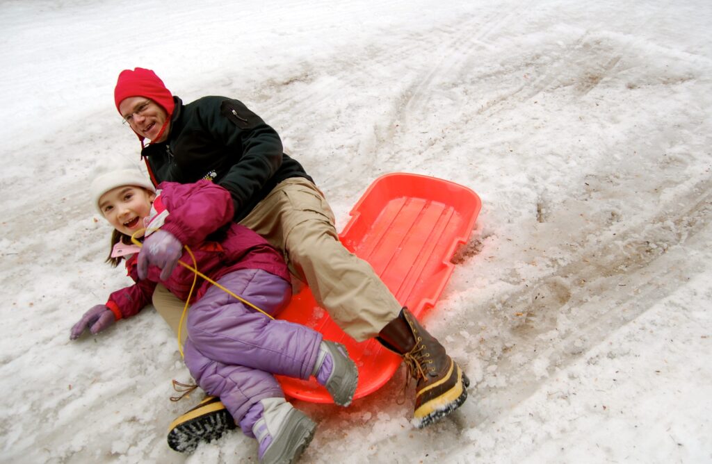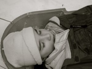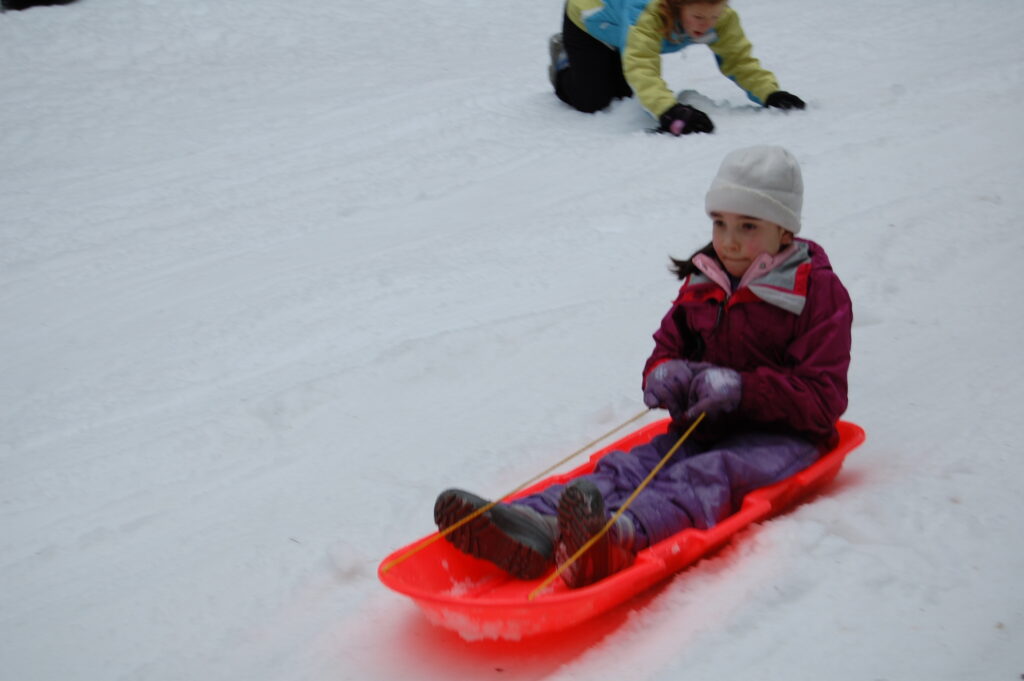 Kate launches the sled all “fast ‘n’ furious.” Note the totally different facial expressions in play, LOL!
