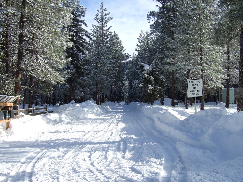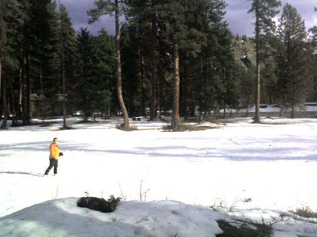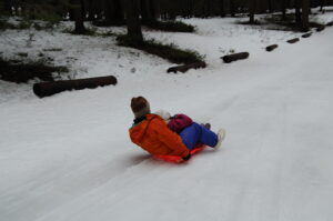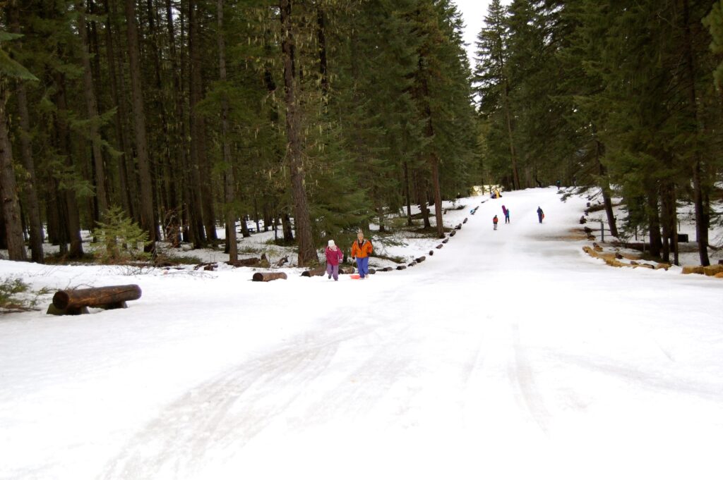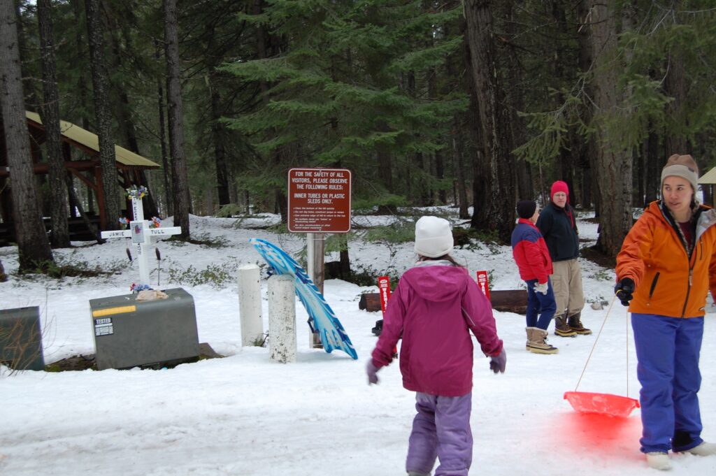 Sled Hill at Lake Wenatchee State Park, where Talia broke her leg when a boy crashed into her 2 years earlier. In the left center of the picture Talia & her Momma walk along the edge of the lane. 15 February 2010.