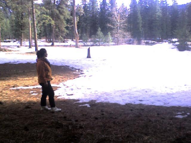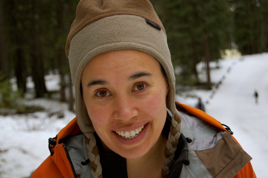 Kristina dreaming as she checks out the woods & snowy meadows of John’s Joint on the way down to the river.