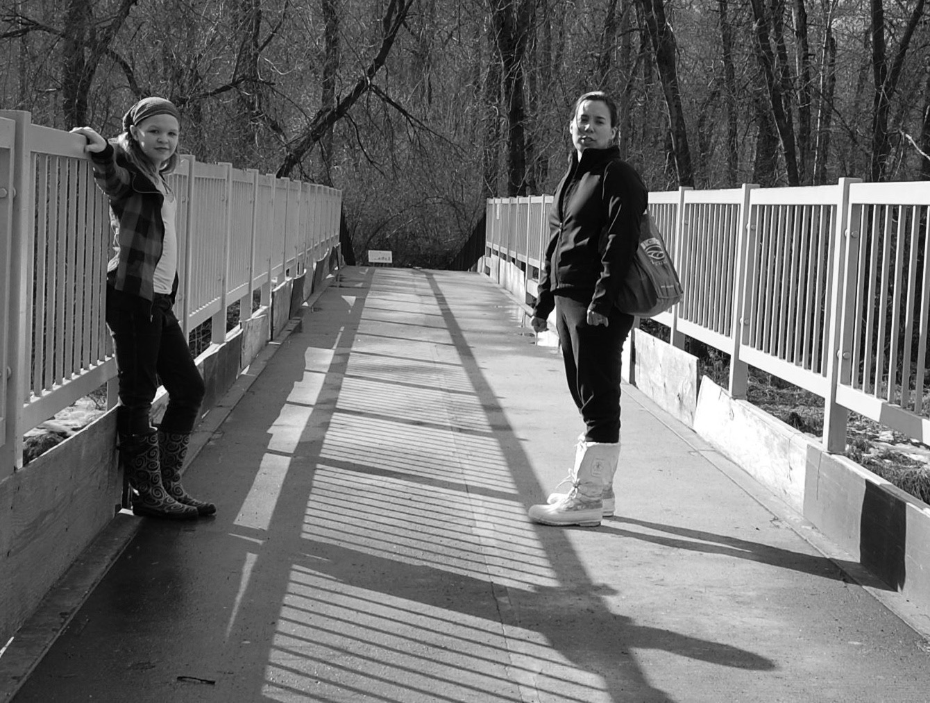 In Leavenworth on the bridge to Blackbird Island Park. It is unseasonably warm and sunny for a winter day in the Cascades of Washington.