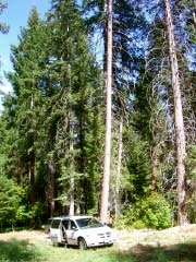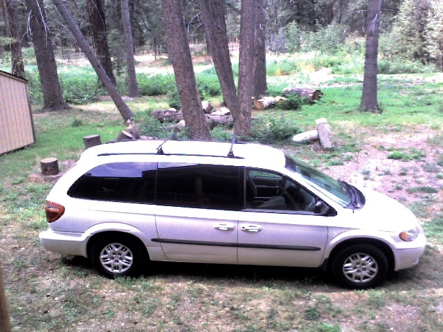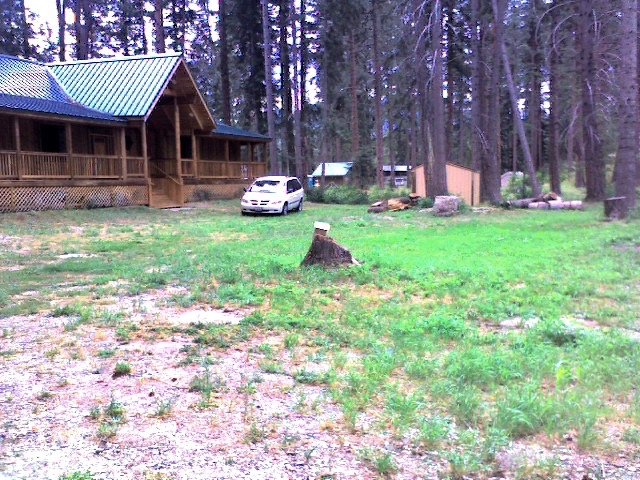 Our family minivan parked below our porch. The front yard spread out towards tall camas grass and trees. We had to keep the yard “parked out” for wildfire insurance protocols. Monday 18 August 2008. Pic by William for the insurance company.
