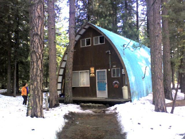 In March 2007 we found this cute little ramshackle cabin back in the woods atop a knoll with large, parked-out acreage on the Wenatchee River. Twas called John’s Joint.