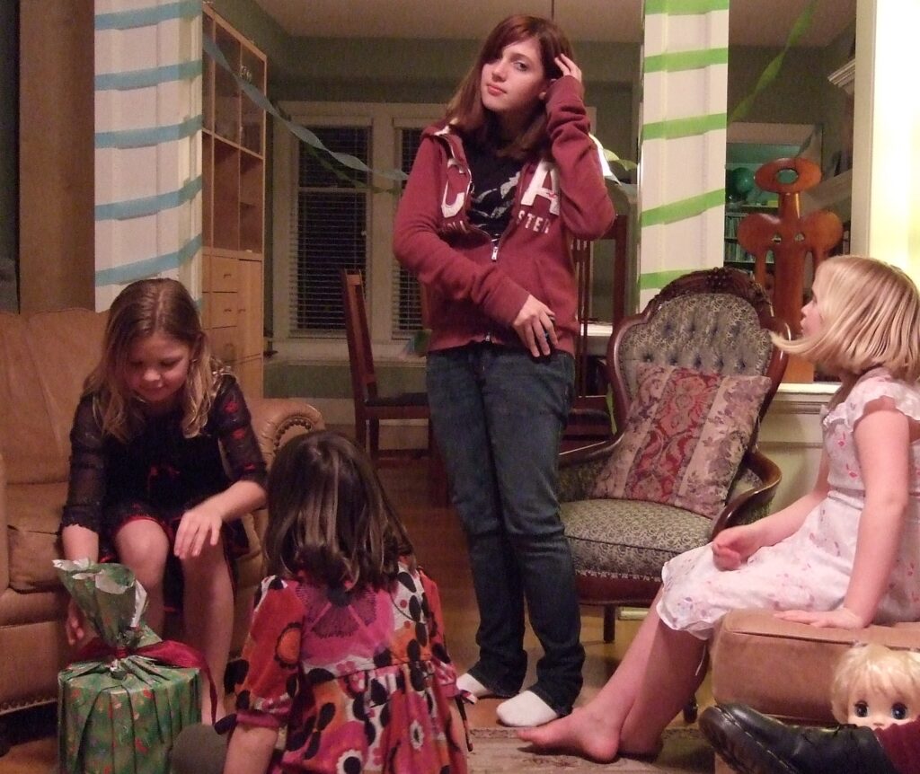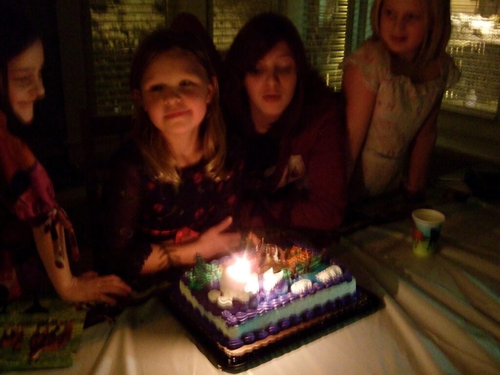 Kate’s 9th Birthday, now back in Seattle at the Yellow Dragonfly House. Pic by Gwen. Saturday evening of the 1st of December 2007. L2R: Talia, Kate, Morgan, & Kate’s buddy Brittany.