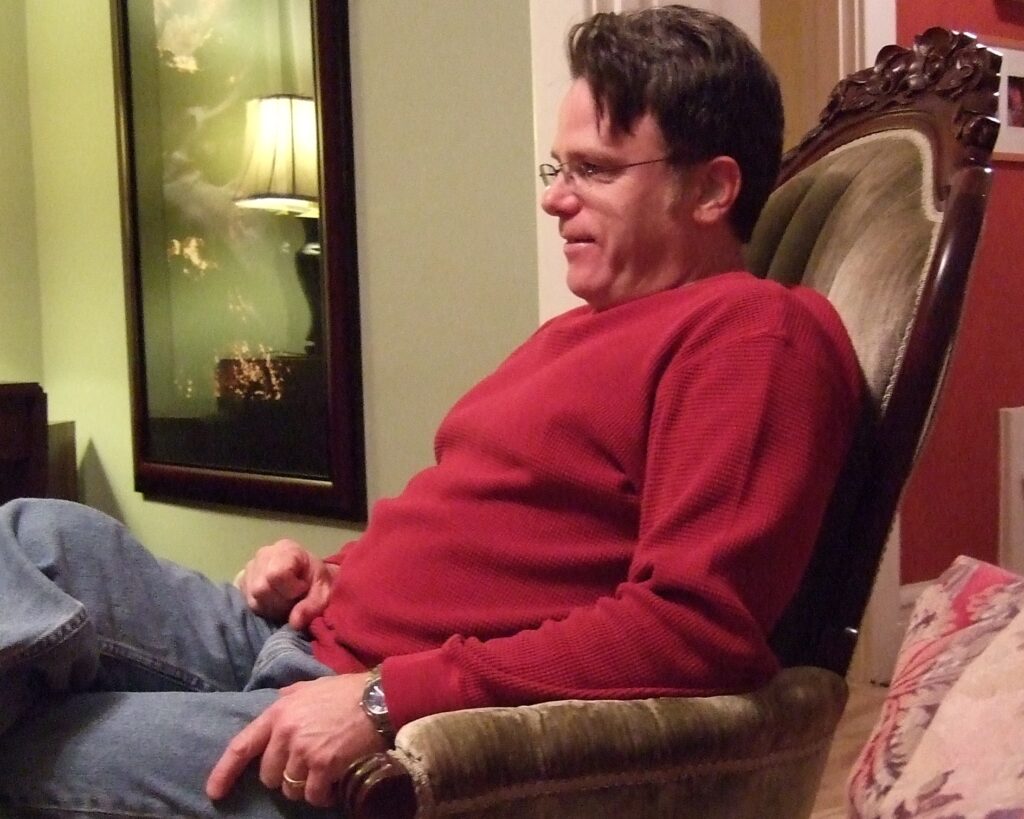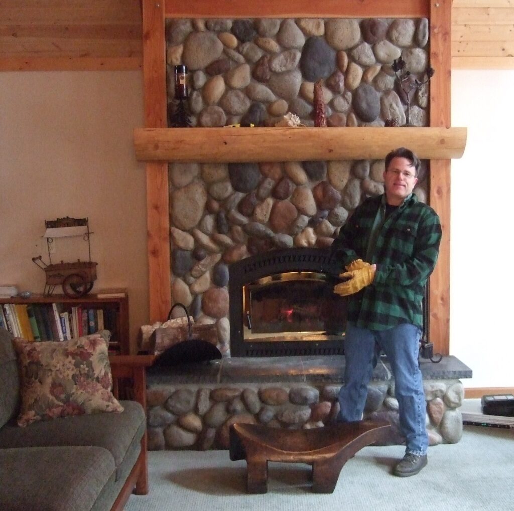 Daddy William (that’s me!) tending the fire. Loved that stone fireplace! And the wooden stool in front was carved from a single log of wood by my Aunt Helen Bass Whitehead of Richmond, VA. She was an artist. We debated if it was a bear or a pig. On the belly was carved a long, literary paragraph. Sadly, this artwork was burned up in the May 2010 Edmonds House Fire. Foto by Gwen Hughes (my then-2nd ex-wife). Saturday 24 November 2007.