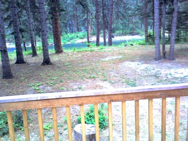 The back side of the River House, the side facing the Wenatchee River. Yeah, I cleared and cleaned up what was an overgrown, debris-strewn yard. “Parked it out,” as the locals say. Took many long days and weeks. Had to for wildfire insurance, too. Hot tub on the deck picture right, and an onion swing, a fun gift for the kids from family friends up in Edmonton, Alberta just left of center. Aye, we love this place. Took us a long time to get over its loss. Was a house we’d expected to leave to our kids and their kids and have family & friends from around the world visit us here. Monday 18 August 2008.