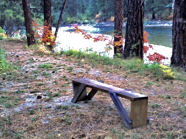 The old sitting bench. We would often sit there watching the water flow downstream and the leaves fall. Was also a good spot for cell fone connectivity. Early to mid-October 2008.