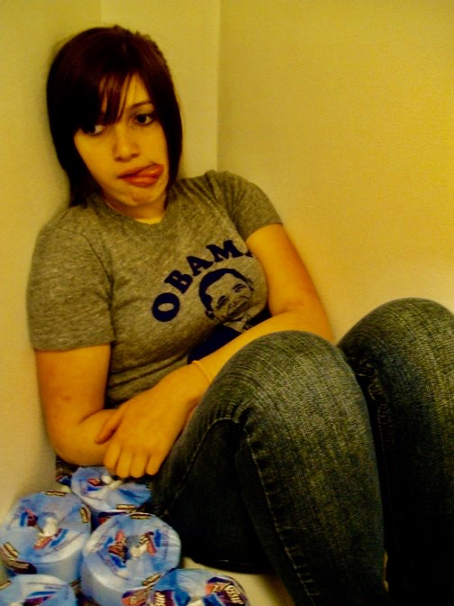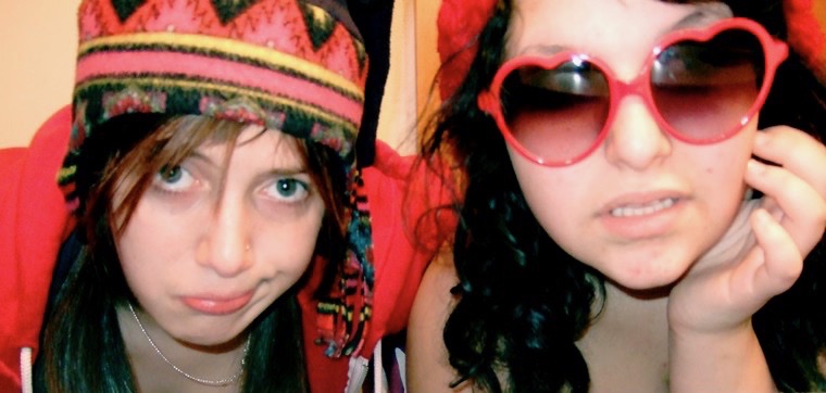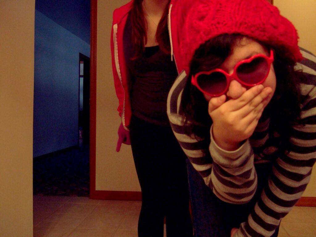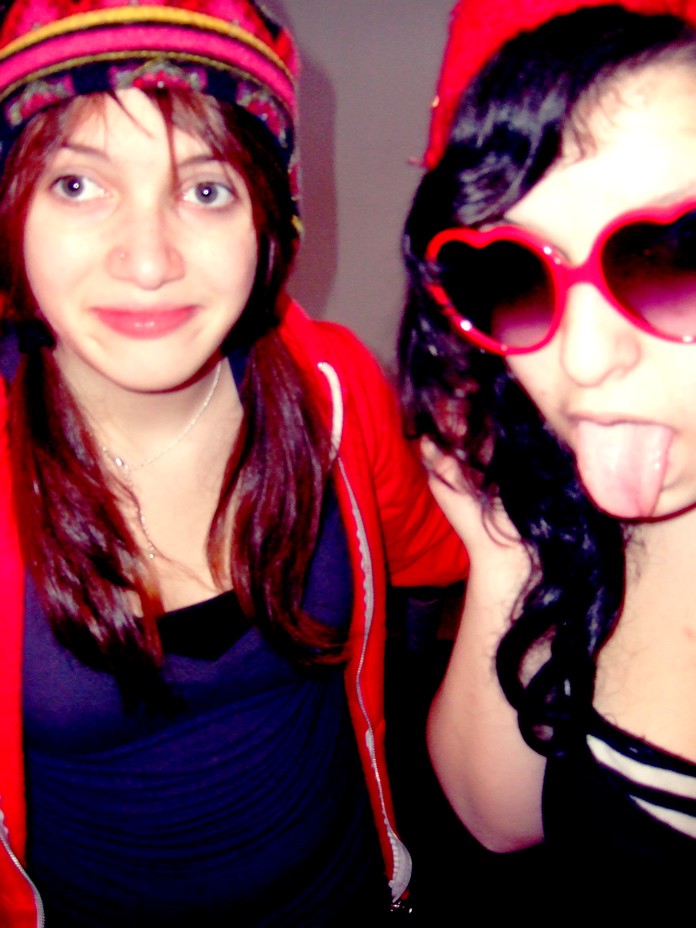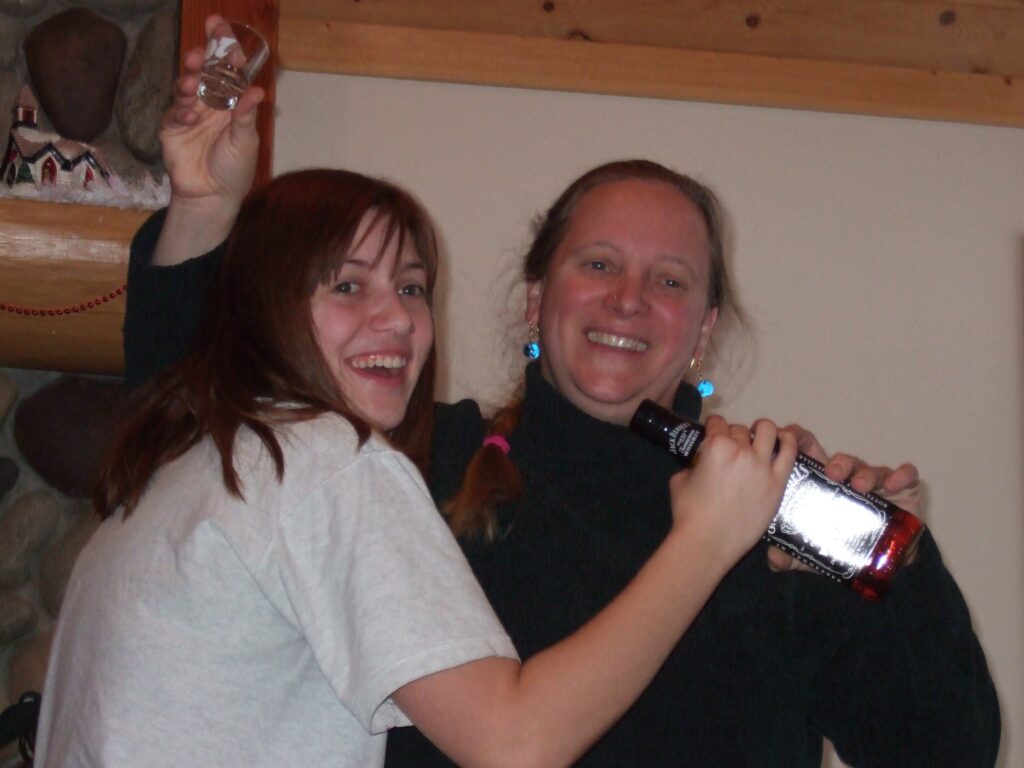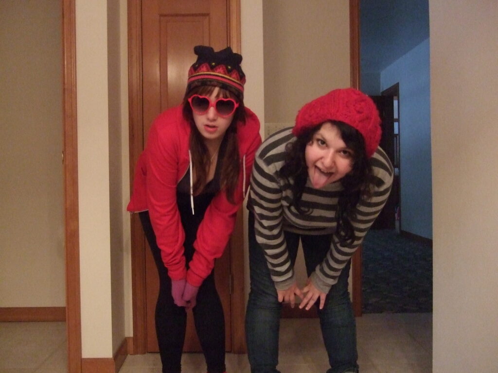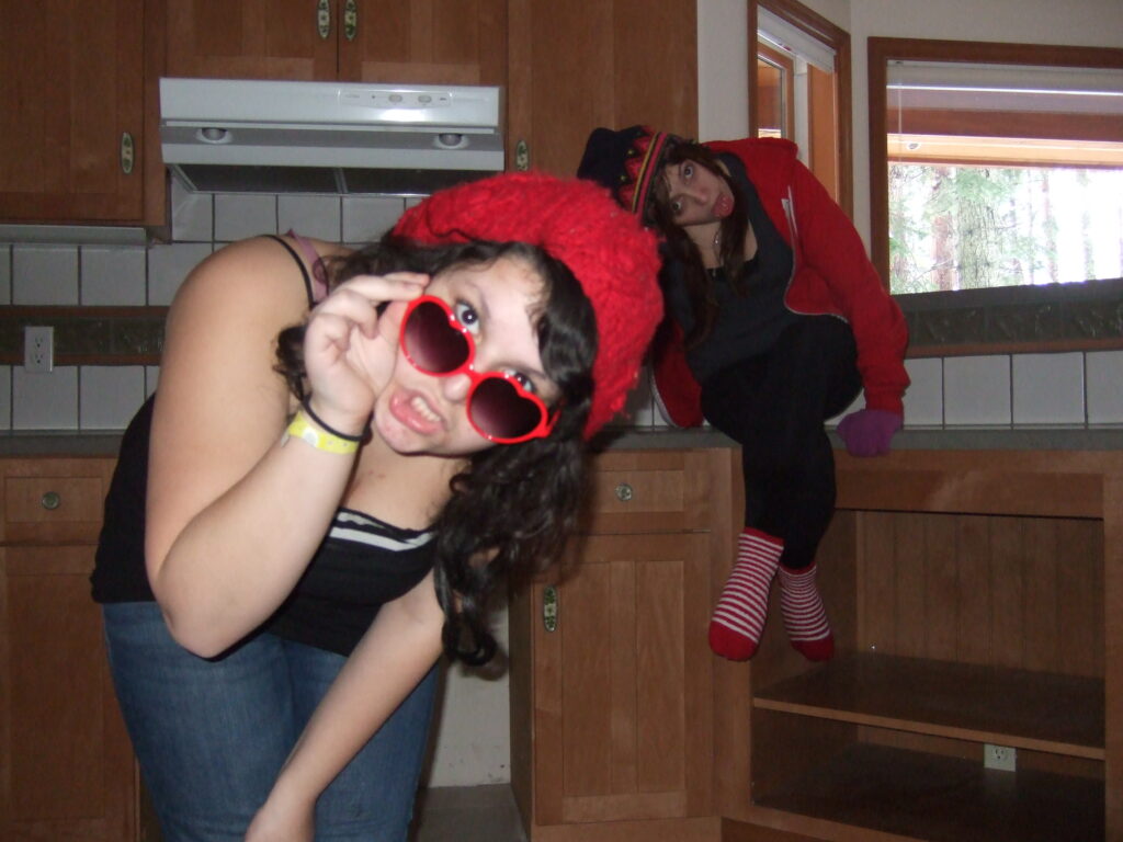 Morgan & her bud Emily Emo goofing around in the Master Bathroom at the River House. Wednesday 16 January 2008.