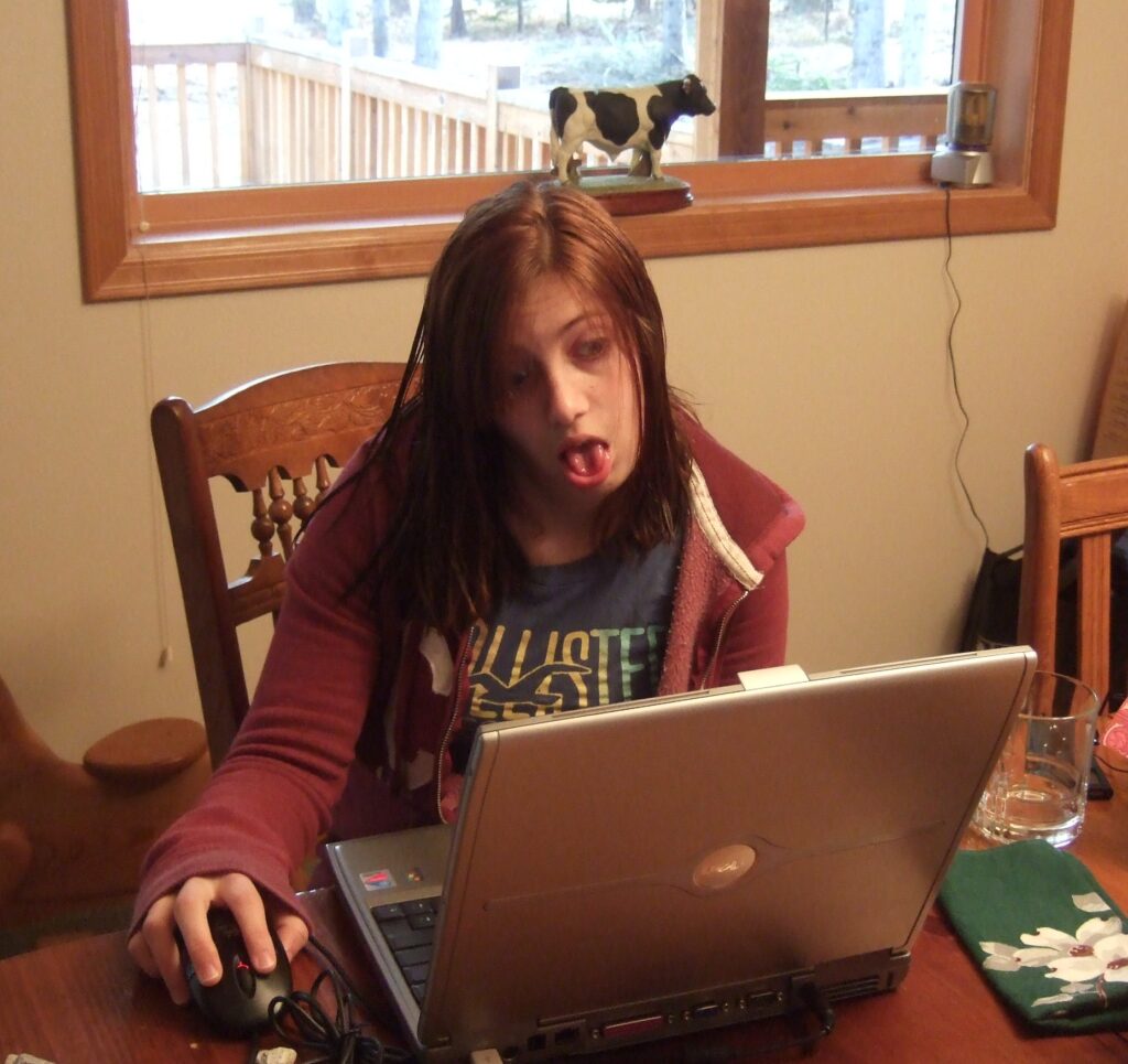 What is it with teenage Millennials & Zoomers sticking out their tongues so much in public? At least they’re not posing all stiff & scary like people did back in the 1800s! Morgan must’ve shot this pic. April 2008.